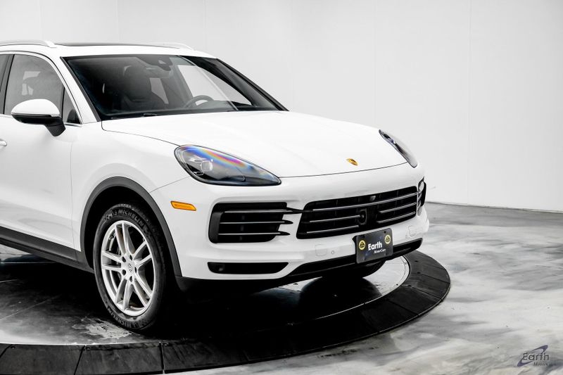 Earth MotorCars is Proud to offer this amazing: 2023 Porsche Cayenne Assistance Package Adaptive Sport Seats 20'' Sport Wheels CARFAX One-Owner. Black Leather, 4-Wheel Disc Brakes, 4-Zone Climate Control, ABS brakes, Adaptive suspension, Air Conditioning, Alloy wheels, AM/FM radio: SiriusXM, Apple CarPlay, Assistance Package, Auto-dimming Rear-View mirror, Automatic temperature control, Bumpers: body-color, Delay-off headlights, Driver vanity mirror, Dual front impact airbags, Dual front side impact airbags, Electronic Stability Control, Exterior Parking Camera Rear, Four wheel independent suspension, Front Bucket Seats, Front Center Armrest, Head-Up Display, Heated door mirrors, Heated Front Seats, Heated Steering Wheel, Illuminated entry, Lane Change Assist (LCA), Low tire pressure warning, Navigation System, Night Vision Assist, Outside temperature display, Panic alarm, Panoramic Roof System, Passenger vanity mirror, Porsche Communication Management, Porsche InnoDrive w/Adaptive Cruise Control, Power Liftgate, Power Steering Plus, Radio data system, Rain sensing wipers, Rear reading lights, Rear window defroster, Remote keyless entry, Roof Rails in Aluminum Finish, Speed control, Spoiler, Steering wheel mounted audio controls, Surround View, Tachometer, Traction control, Trailer Hitch w/o Tow Ball, Tri-Zone A/C, Wheels: 20'' Cayenne Sport.