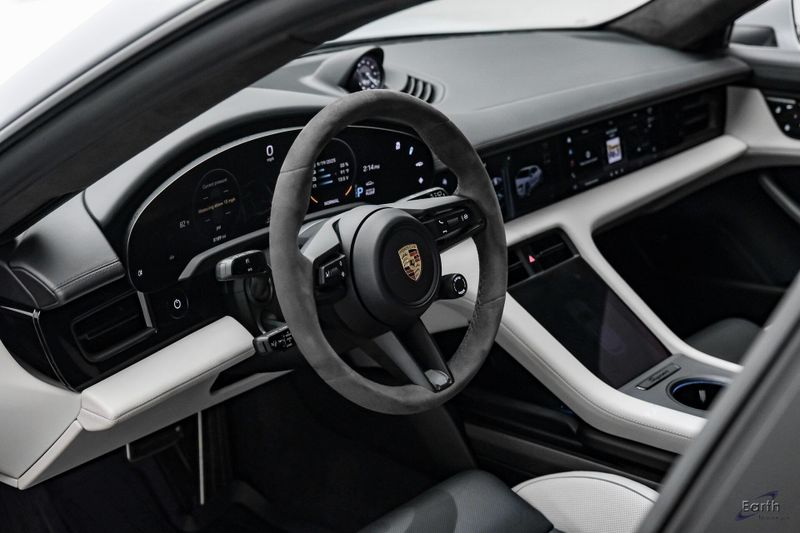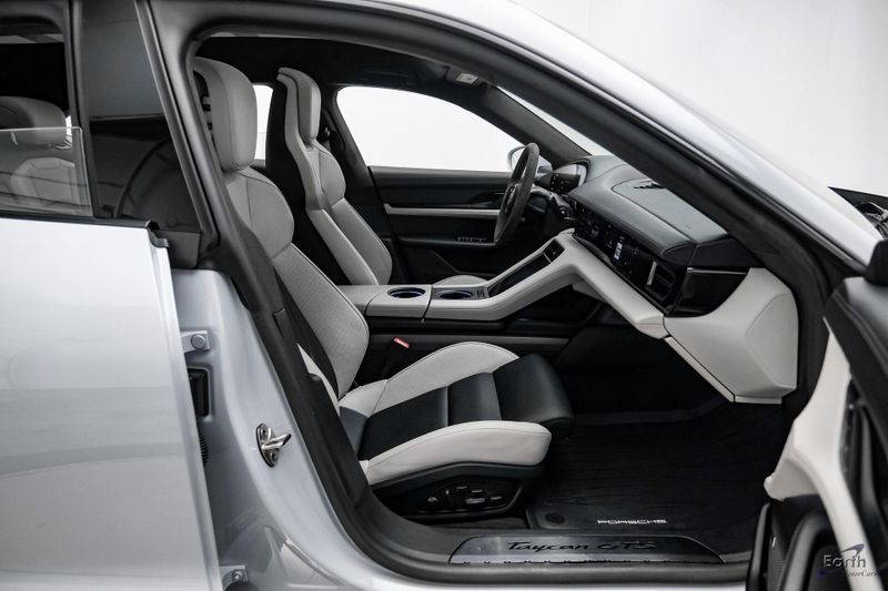 Earth MotorCars is Proud to offer this amazing: 2023 Porsche Taycan GTS Technology Premium Pano Roof 21 RS Wheels CARFAX One-Owner. CLEAN AUTOCHECK REPORT, Ice Grey Metallic $3,150.00, 25 Ft Charging Cable, 4-Wheel Disc Brakes, ABS brakes, Adaptive Cruise Control, Adaptive suspension, Advanced 4-Zone Climate Control, Air Conditioning, Auto High-beam Headlights, Auto tilt-away steering wheel, Auto-dimming door mirrors, Auto-dimming Rear-View mirror, Automatic temperature control, BOSE Surround Sound System, Bumpers: body-color, Deviated Leather Seat Centers, Driver vanity mirror, Dual front impact airbags, Dual front side impact airbags, Electronic Stability Control, Exterior Parking Camera Rear, Fixed Panoramic Roof in Glass, Four wheel independent suspension, Front Bucket Seats, Front Center Armrest, Head-Up Display, Heated door mirrors, Heated front seats, Heated steering wheel, Illuminated entry, Interior Trim in Carbon Fiber, Ionizer, Knee airbag, Lane Change Assist (LCA), Leather Seat Trim w/Two-Tone Leather Interior, Mobile Charger Connect, Outside temperature display, Passenger Display, Passenger vanity mirror, Power Charge Port Cover, Power Folding Exterior Mirrors, Power Liftgate, Premium Package, Rain sensing wipers, Rear window defroster, Rear window wiper, Remote ParkAssist, Seat Belts in Chalk, Security system, Speed control, Steering wheel mounted audio controls, Storage Package, Surround View, Technology Package, Thermally & Noise Insulated Glass, Ventilated Front Seats, Wheels: 21'' RS Spyder Design.