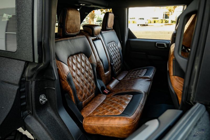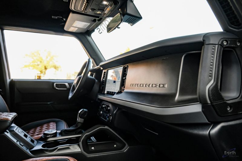 Earth MotorCars is Proud to offer this amazing: 2024 Ford Bronco Big Bend 5'' Lift 38'' Tires SOFO Custom Clean CARFAX. CLEAN AUTOCHECK REPORT, Armor Coated Black, Cowboy Saddle Diamond Stitched Leather, SlFlo Lifted Custom, 5'' Lift, 38'' Tires, Lawman Hood, Aluminum Front Bumper, LED Lights, 10-SPEED AUTO TRANSMISSION 1,495.00, 3.73 Axle Ratio, 4-Wheel Disc Brakes, 7 Speakers, ABS brakes, Air Conditioning, AM/FM radio: SiriusXM with 360L, Auto High-beam Headlights, Auxiliary Switches, Brake assist, Carbonized Gray Molded-In-Color Hard Top, Compass, Driver vanity mirror, Dual front impact airbags, Dual front side impact airbags, Equipment Group 221A Standard Package, Front Bucket Seats, Front Center Armrest, Front Row Top Panels Storage Bag, Front wheel independent suspension, Fully automatic headlights, Hard Top Sound Deadening Headliner, Heated door mirrors, Illuminated entry, Outside temperature display, Panic alarm, Passenger vanity mirror, Rear-Window Defroster & Washer, Security system, Speed control, Split folding rear seat, Steering wheel mounted audio controls, Tachometer, Telescoping steering wheel, Tilt steering wheel, Traction control, Trip computer, Variably intermittent wipers.