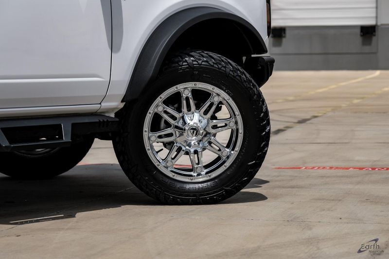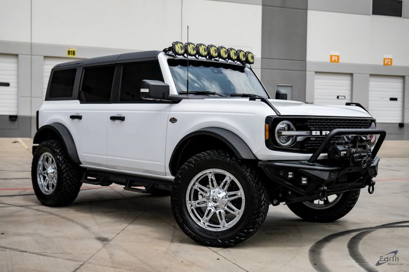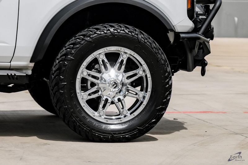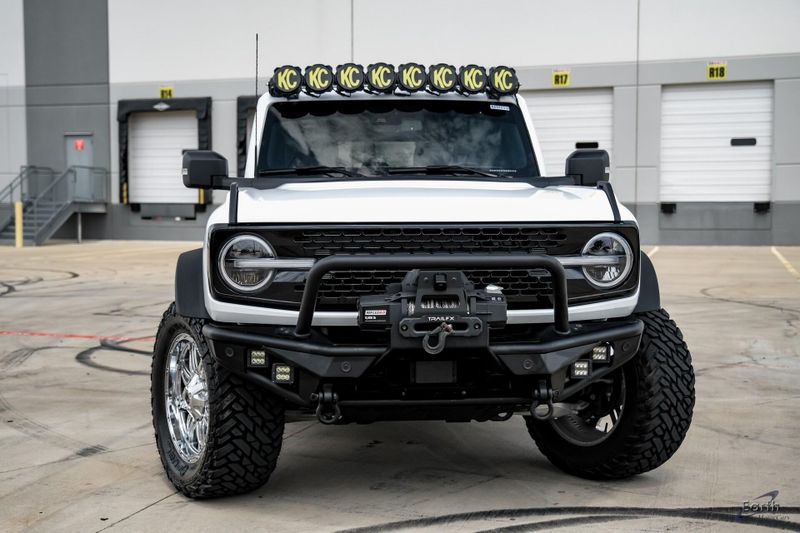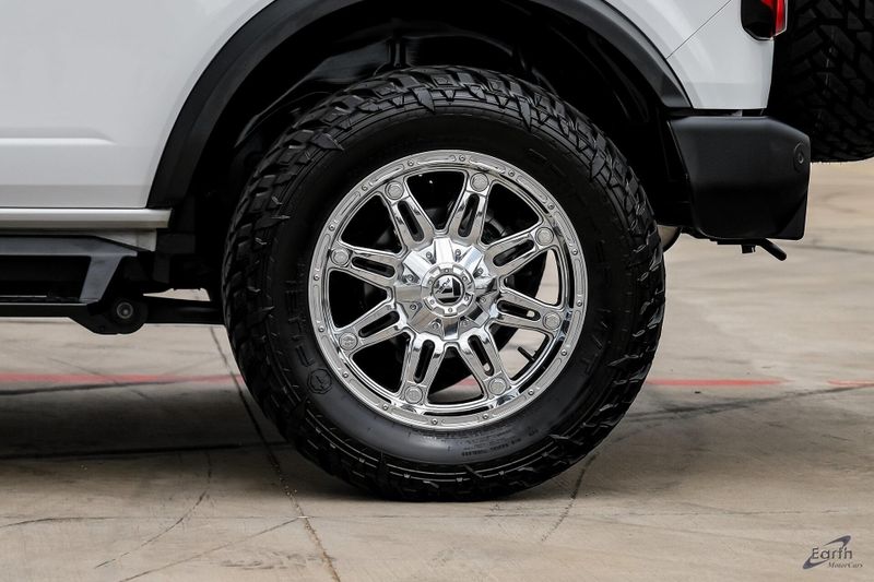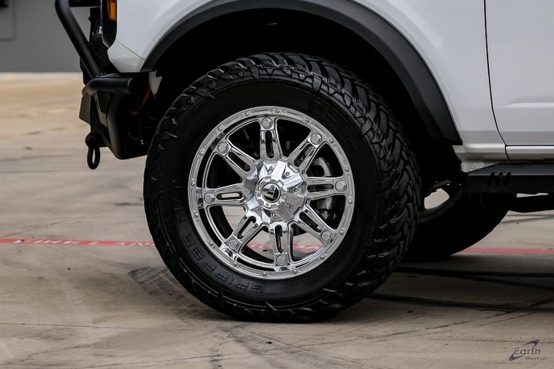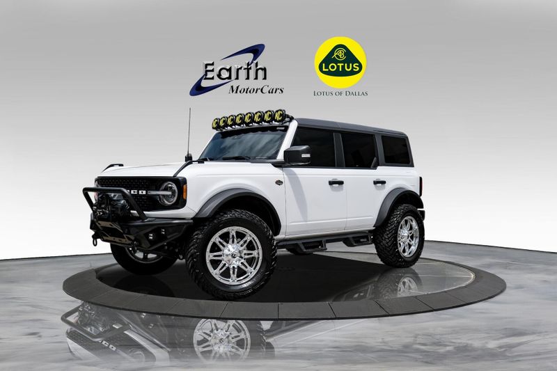 Earth MotorCars is Proud to offer this amazing: 2024 Ford Bronco Wildtrak Hard Top Chrome Fuel 20'' Wheels Winch CARFAX One-Owner. Clean CARFAX. CLEAN AUTOCHECK REPORT, 3'' LIFT, 20'' CHROME FUEL WHEELS, 35'' FUEL GRIPPER M/T TIRES, 8 KC Off-Road Lights, TRAILFX REFLEX 2.0 9,500LB WINCH, FRONT POD LED LIGHTS IN FRONT BRUSH BAR, 10 Speakers w/Subwoofer, 360-Degree Camera, Adaptive Cruise Control, Additional Sound Deadening, Air Conditioning, Auto High-beam Headlights, Automatic temperature control, Brake assist, Carbonized Gray Molded-In-Color Hard Top, Delay-off headlights, Dual front impact airbags, Dual front side impact airbags, Electronic Stability Control, Equipment Group 354A High/Lux Package, Evasive Steering Assist, Front Bucket Seats, Front Center Armrest, Front Parking Sensors, Front Row Top Panels Storage Bag, Hard Top Sound Deadening Headliner, Heated front seats, Heated Leather-Trimmed/Vinyl Bucket Seats, Heated Steering Wheel, Illuminated entry, Information on Demand Panel, Panic alarm, Power windows, Radio: B&O Sound System by Bang & Olufsen, Rear-Window Defroster & Washer, Remote keyless entry, Security system, Sideview Mirrors, SiriusXM Radio w/360L, Steering wheel mounted audio controls, Tachometer, Telescoping steering wheel, Tilt steering wheel, Universal Garage Door Opener, Variably intermittent wipers, Wireless Charging Pad.