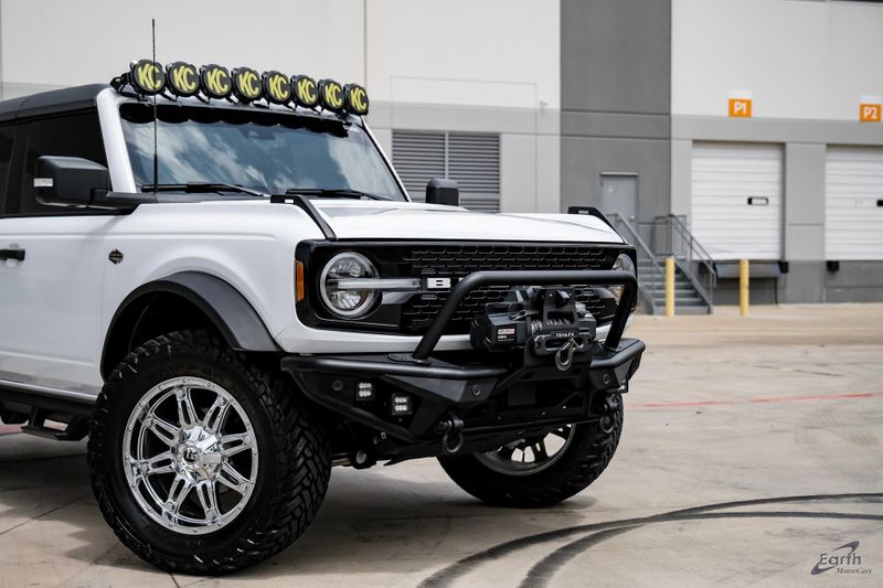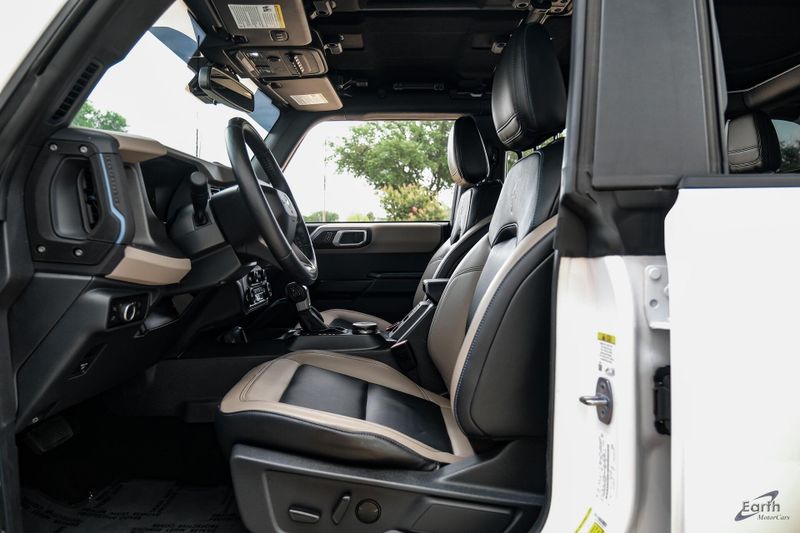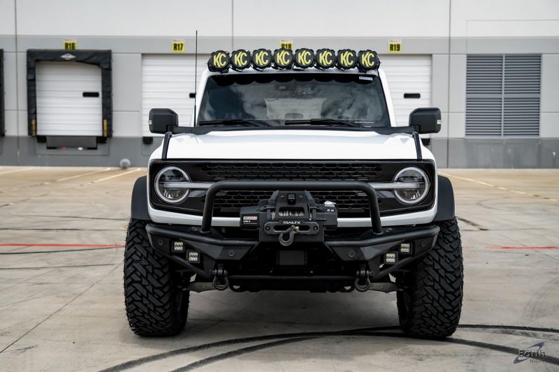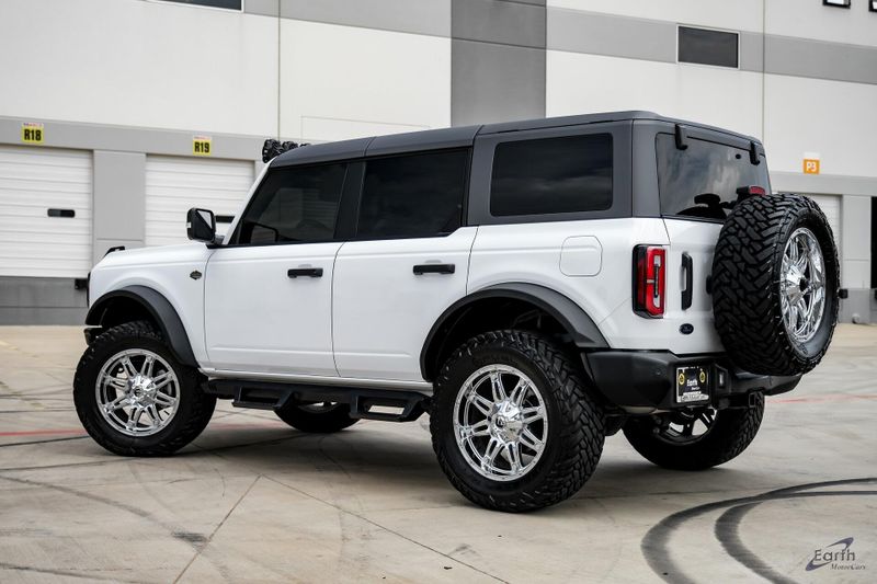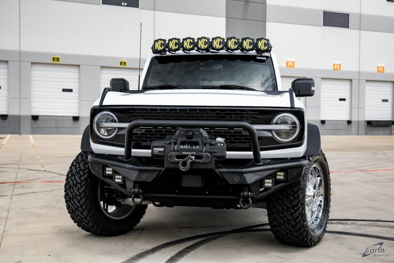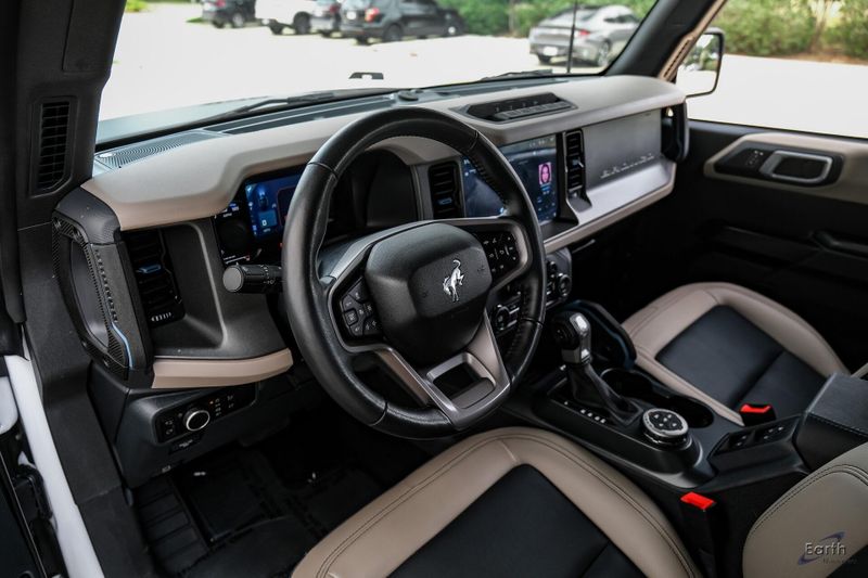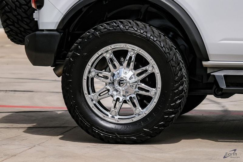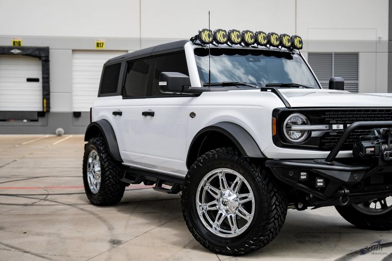 Earth MotorCars is Proud to offer this amazing: 2024 Ford Bronco Wildtrak Hard Top Chrome Fuel 20'' Wheels Winch CARFAX One-Owner. Clean CARFAX. CLEAN AUTOCHECK REPORT, 3'' LIFT, 20'' CHROME FUEL WHEELS, 35'' FUEL GRIPPER M/T TIRES, 8 KC Off-Road Lights, TRAILFX REFLEX 2.0 9,500LB WINCH, FRONT POD LED LIGHTS IN FRONT BRUSH BAR, 10 Speakers w/Subwoofer, 360-Degree Camera, Adaptive Cruise Control, Additional Sound Deadening, Air Conditioning, Auto High-beam Headlights, Automatic temperature control, Brake assist, Carbonized Gray Molded-In-Color Hard Top, Delay-off headlights, Dual front impact airbags, Dual front side impact airbags, Electronic Stability Control, Equipment Group 354A High/Lux Package, Evasive Steering Assist, Front Bucket Seats, Front Center Armrest, Front Parking Sensors, Front Row Top Panels Storage Bag, Hard Top Sound Deadening Headliner, Heated front seats, Heated Leather-Trimmed/Vinyl Bucket Seats, Heated Steering Wheel, Illuminated entry, Information on Demand Panel, Panic alarm, Power windows, Radio: B&O Sound System by Bang & Olufsen, Rear-Window Defroster & Washer, Remote keyless entry, Security system, Sideview Mirrors, SiriusXM Radio w/360L, Steering wheel mounted audio controls, Tachometer, Telescoping steering wheel, Tilt steering wheel, Universal Garage Door Opener, Variably intermittent wipers, Wireless Charging Pad.