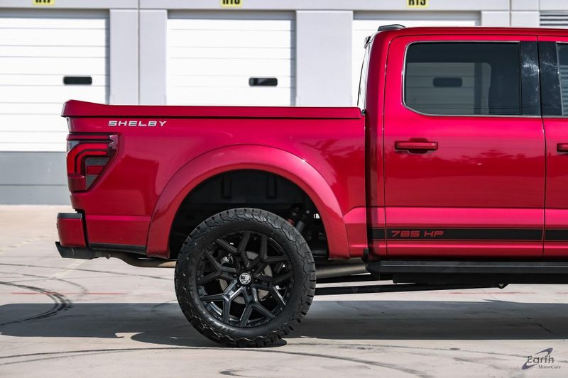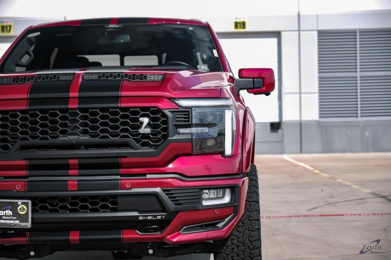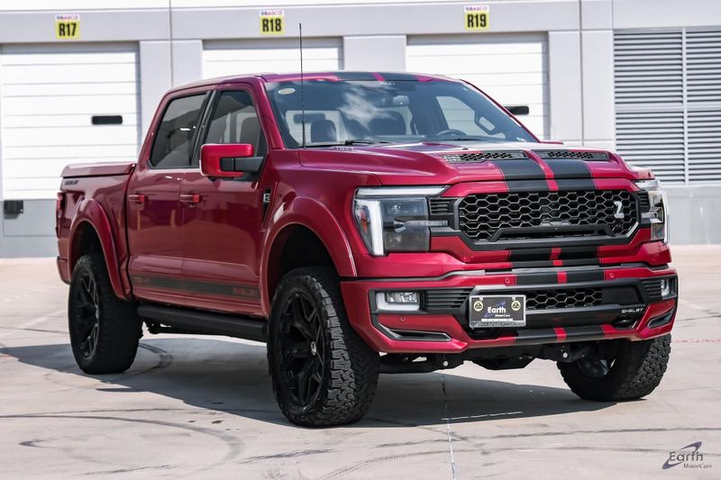Earth MotorCars is Proud to offer this amazing: 2024 Ford F-150 Lariat Shelby Super Snake 785HP 4D SuperCrew CARFAX One-Owner. Clean CARFAX. Shelby Super Snake 785HP, Upgraded Billet Throttle Body, SHELBY Tuned BORLA Performance Exhaust, Dual Intake RAM AIR SHELBY Super Snake Hood, 22 inch Shelby alloy wheels, Shelby F-150 Package $62,995, Shelby by FOX suspension system, Shelby by BDS 3'' lift system, Carbon fiber aesthetic interior trim kit, 4WD, 2nd Row Heated Seats, 4 Pickup Box Tie-Down Plates, 6'' Extended Chrome Running Boards, 8 Speakers, Adjustable pedals, Air Conditioning, Auto High-beam Headlights, Auto-dimming door mirrors, Auto-dimming Rear-View mirror, Automatic temperature control, Bed Utility Package, Bumpers: chrome, Console Worksurface, Electronic Locking w/3.73 Axle Ratio, Electronic Stability Control, Equipment Group 502A High, Fully automatic headlights, Garage door transmitter, GVWR: 7,100 lbs Payload Package, Heads-Up Display, Heated door mirrors, LED Box Lighting, LED Sideview Mirror Spotlights, Memory seat, Mobile Office Package, Navigation system: Connected Navigation, Outside temperature display, Partitioned Lockable Rear Storage, Passenger vanity mirror, Pedal memory, Power door mirrors, Power Tailgate, Pro Access Tailgate, Radio: B&O Unleashed Sound System by Bang & Olufsen, Rear seat center armrest, Remote keyless entry, Security system, Speed control, Steering wheel mounted audio controls, SYNC 4 w/Enhanced Voice Recognition, Tachometer, Tri-Zone A/C, Twin Panel Moonroof, Variably intermittent wipers, Ventilated front seats, Wheel Well Liner, Wheels: 22'' Gloss Black w/o Inserts, Wireless Charging.