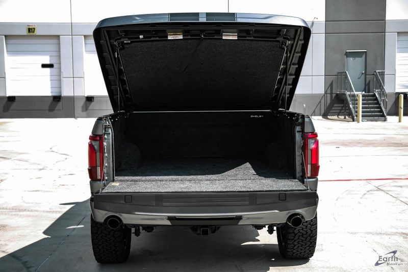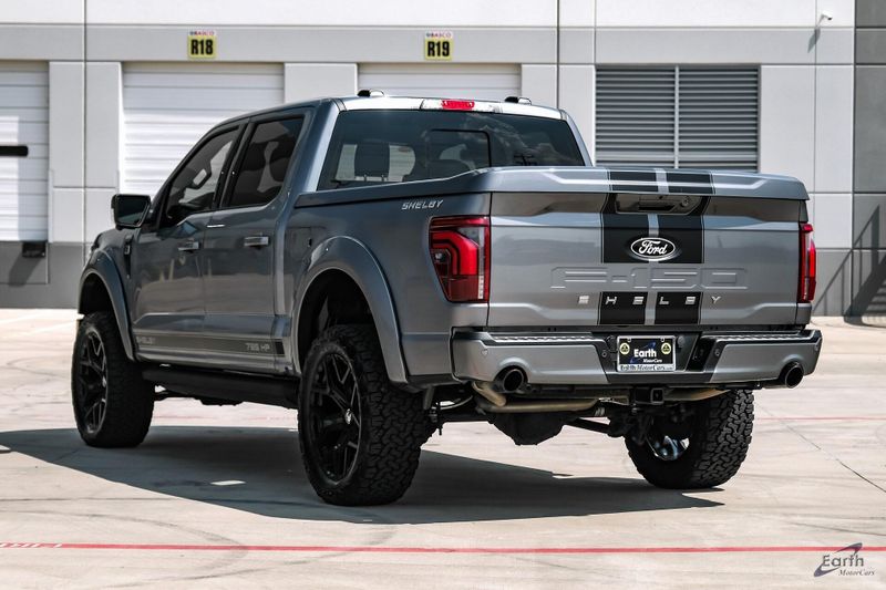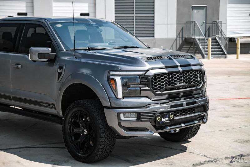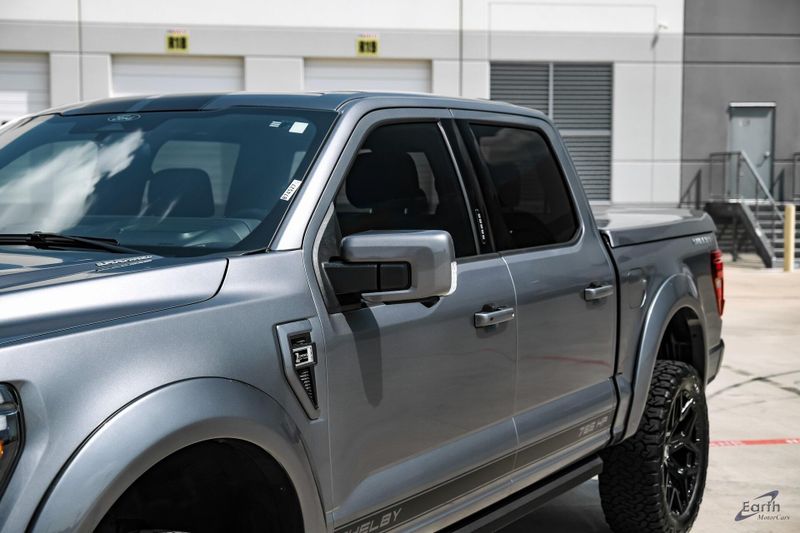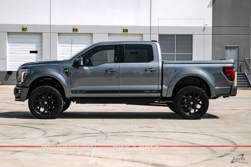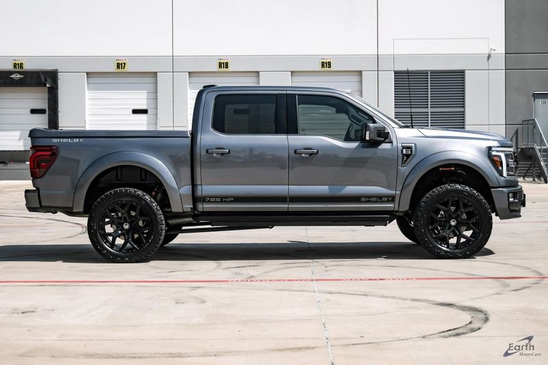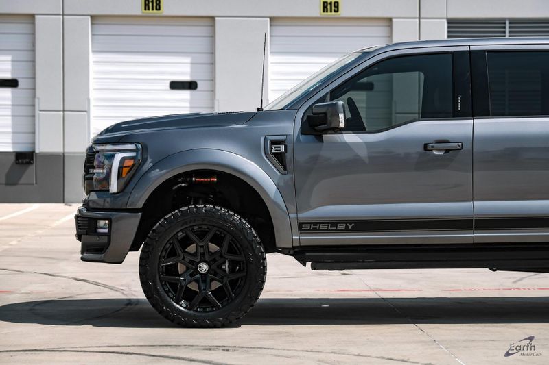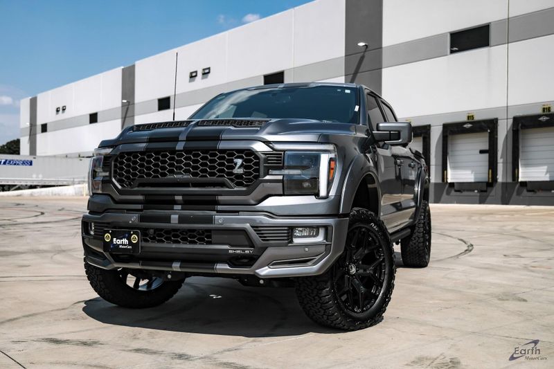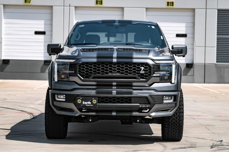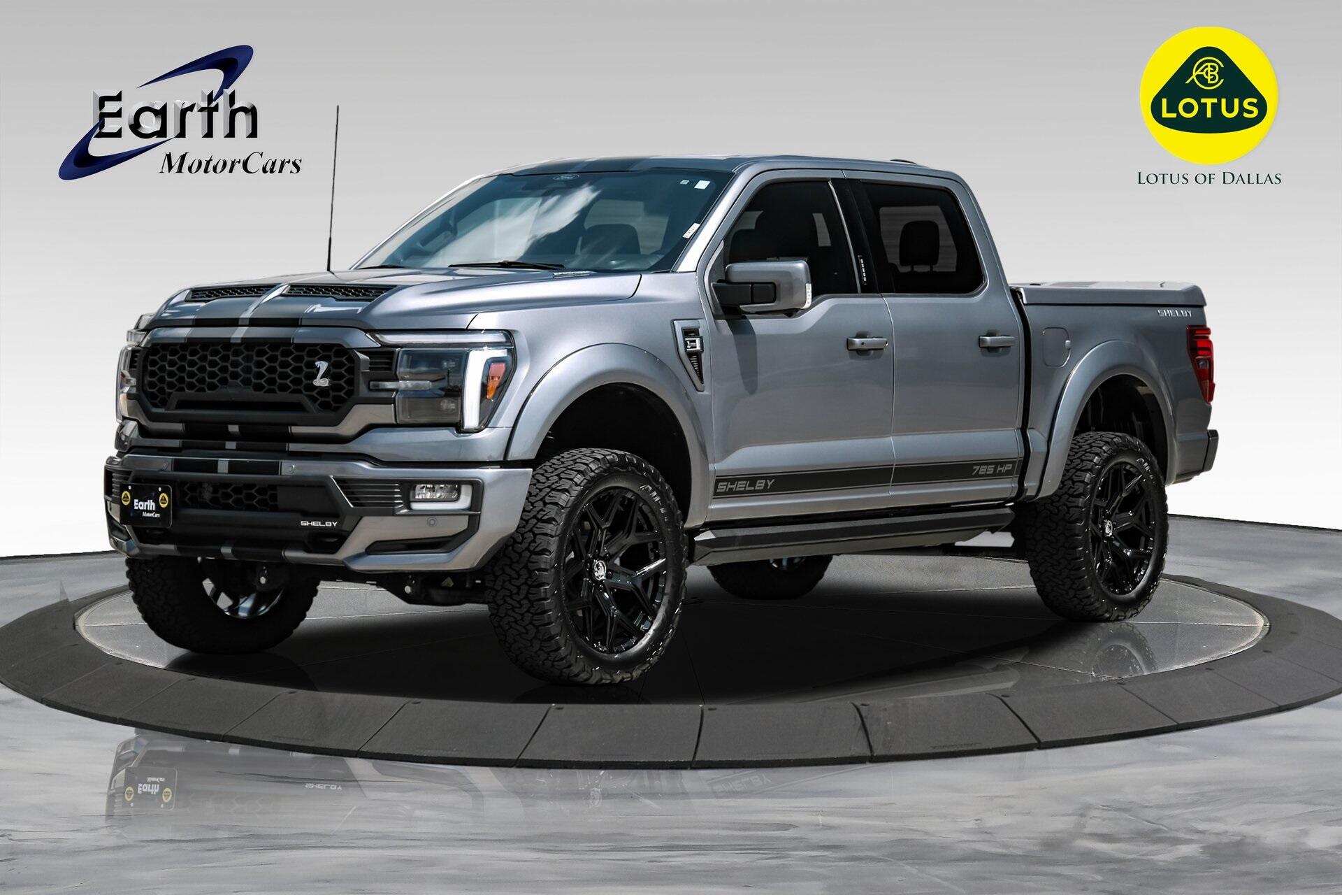 Earth MotorCars is Proud to offer this amazing: 2024 Ford F-150 Lariat Shelby 785 HP Whipple Superchargered LOADED! CARFAX One-Owner. 785+ HP, Whipple twin-screw supercharger, Performance plugs, injectors, heat exchanger, and an upgraded billet throttle body., Shelby by Borla performance exhaust, 35-inch premium all-terrain tires, 22-inch Shelby alloy wheels, Shelby by BDS 3-inch lift system, FOX 2.5 factory race series shocks with internal bypass technology, Dual-intake functional hood, Custom Shelby front grille, bumper cover, and fender flares, Shelby racing stripes and badging, Power-deploying running boards feature rock guard trim and entry lights., The cargo area is lined with a carpeted bed rug and a body-color tonneau cover, Shelby-specific black leather seats have been upgraded with red stitching and embroidery., Only 800 of the 2024 Shelby F-150 trucks were planned for the U.S. market., 4WD, 2nd Row Heated Seats, 4-Wheel Disc Brakes, 6'' Extended Chrome Running Boards, ABS brakes, Adjustable pedals, Air Conditioning, Auto-dimming door mirrors, Automatic temperature control, Black Exterior Badging, Black Grille, Black Taillamp Bezels, Body-Color Front & Rear Bumpers, Body-Color Skull Caps & Door Handles, Console Worksurface, Dark Interior Appliques, Dual Exhaust w/Black Tips, Dual front impact airbags, Emergency communication system: SYNC 4 911 Assist, Equipment Group 502A High, Front Bucket Seats, Front Center Armrest, Fully automatic headlights, Gray Box Side Decal, Heads-Up Display, Heated front seats, Illuminated entry, In-Vehicle Safe By Console Vault, Integrated Trailer Brake Controller, Lariat Black Appearance Package, Leather-Trimmed Bucket Seats, Matte Black Tailgate F-150 Decal, Max Tow Electronic Locking w/3.73 Axle Ratio, Mobile Office Package, Partitioned Lockable Rear Storage, Radio: B&O Unleashed Sound System by Bang & Olufsen, Rain sensing wipers, Rear window defroster, Steering wheel mounted audio controls, Tow/Haul Package, Twin Panel Moonroof, Variably intermittent wipers, Ventilated front seats, Wheel Well Liner, Wireless Charging.
