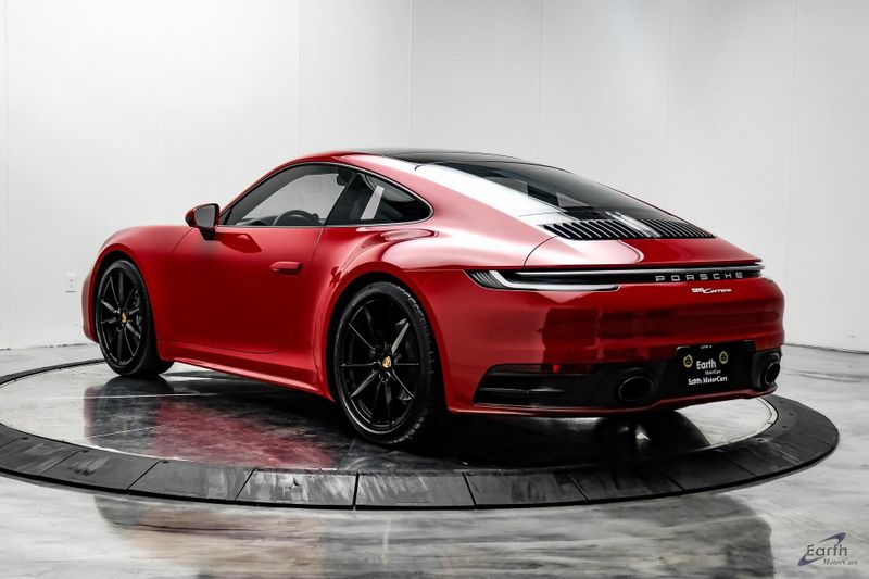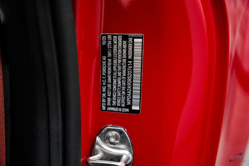 Earth MotorCars is Proud to offer this amazing: 2024 Porsche 911 Carrera Premium Pkg Leather Interior Sport Chrono Glass Sunroof CARFAX One-Owner. Clean CARFAX. Carmine Red $3,270.00, 14-Way Power Sport Seats w/Memory Package, 4-Wheel Disc Brakes, ABS brakes, Air Conditioning, Ambient Lighting, Auto-dimming door mirrors, Automatic temperature control, BOSE Surround Sound System, Bumpers: body-color, Delay-off headlights, Deviated Stitching Interior Package, Dual front impact airbags, Dual front side impact airbags, Electric Slide/Tilt Glass Sunroof, Electronic Stability Control, Exclusive Design Taillights, Extended Range 23.7 Gallon Fuel Tank, Exterior Parking Camera Rear, Front Bucket Seats, Front Center Armrest, Front Ventilated Seats, GT Sport Steering Wheel in Leather, Heated front seats, Illuminated entry, Lane Change Assist (LCA), Leather Seat Trim w/Leather Package, Locking Wheel Bolts, Navigation system: Porsche Communication Management (PCM), Porsche Communication Management, Porsche Dynamic Light System Plus (PDLS+), Power Folding Exterior Mirrors, Premium Package, Rain sensing wipers, Rear window defroster, Remote keyless entry, Seat Belts in Bordeaux Red, Sound Package Plus, Speed control, Spoiler, Sport Chrono Package, Sport Exhaust System w/Tailpipes in Black, SportDesign Side Skirts, Steering wheel mounted audio controls, Storage Package, Surround View, Tachometer, Telescoping steering wheel, Tilt steering wheel, Trip computer, Variably intermittent wipers, Wheels Painted in High Gloss Black, Wheels: 20'' Front/21'' Rear Carrera S.