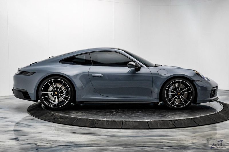 Earth MotorCars is Proud to offer this amazing: 2024 Porsche 911 Carrera GTS RARE 7-Speed Manual $31k in Factory Options! Clean CARFAX. Arctic Grey $3,270.00, Leather Interior in Black/Bordeaux Red $4,960.00, 18-Way Adaptive Sport Seats Plus w/Memory Package, 4-Wheel Disc Brakes, 930 Leather Package, ABS brakes, Air Conditioning, Aluminum Pedals & Footrest, Ambient Lighting, Auto-dimming door mirrors, Auto-dimming Rear-View mirror, Automatic temperature control, BOSE Surround Sound System, Brake Calipers in High Gloss Black, Center Console Lid w/Model Designation, Dual front impact airbags, Dual front side impact airbags, Electric Slide/Tilt Sunroof, Electronic Stability Control, Exclusive Design Fuel Cap, Extended Range 23.7 Gallon Fuel Tank, Exterior Parking Camera Rear, Four wheel independent suspension, Front Bucket Seats, Front Ventilated Seats, Fully automatic headlights, Heated GT Sport Steering Wheel, Illum Bespoke Door-Sill Guards in Blk Brushed Alum, Illuminated entry, Interior Mirror Panel in Race-Tex, Lane Change Assist (LCA), LED-Matrix Design Headlights in Black w/PDLS+, Navigation system: Porsche Communication Management (PCM), Outside temperature display, Porsche Communication Management, Porsche Crest on Front Headrests, Power Folding Exterior Mirrors, Premium Package, Preparation for Front & Rear Porsche Dashcam, Rear Axle Steering, Rear window defroster, Rear Wiper, Roof Lining in Race-Tex, Seat Belt Outlet Trims in Race-Tex, Sound Package Plus, SportDesign Side Skirts in Matte Black, Storage Package, Sun Visors in Race-Tex, Surround View, Tachometer, Traction control, Under Door Puddle Light Projectors, Wheels: 20'' Front/21'' Rear Carrera S.