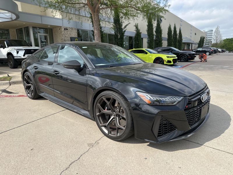 Earth MotorCars is Proud to offer this amazing: 2025 Audi RS 7 Performance 4.0T Quattro Matte Carbon Pkg Executive Driver Assist CARFAX One-Owner. 4-Wheel Disc Brakes, ABS brakes, Adaptive Cruise Assist w/Lane Guidance, Air Conditioning, Alloy wheels, Audi Side Assist w/Pre Sense Rear, Auto High-beam Headlights, Auto-dimming door mirrors, Automatic temperature control, Bang & Olufsen Advanced Sound System w/3D Sound, Black Exterior Elements, Compass, Driver Assistance Package, Dual front impact airbags, Dual front side impact airbags, Electronic Stability Control, Executive Package, Exterior Parking Camera Rear, Four wheel independent suspension, Head-Up Display, Heated & Ventilated Sports Seats Plus, Heated door mirrors, Heated front seats, Heated Rear Seats, Illuminated entry, Intersection Assist, Leather Package, Low tire pressure warning, Matte Carbon Exterior Mirror Housings, Matte Carbon Exterior Trim, Matte Carbon Package, Navigation System, Power Liftgate, Power moonroof, Power Soft-Closing Doors, Rear dual zone A/C, Rear window defroster, Remote keyless entry, Remote Park Assist Plus, RS Sport Exhaust System, Steering wheel mounted audio controls, Tachometer, Traction control, Tri-Zone A/C, Variably intermittent wipers, Wheels: 22'' 5-Y-Spoke Design Matte Black Finish.