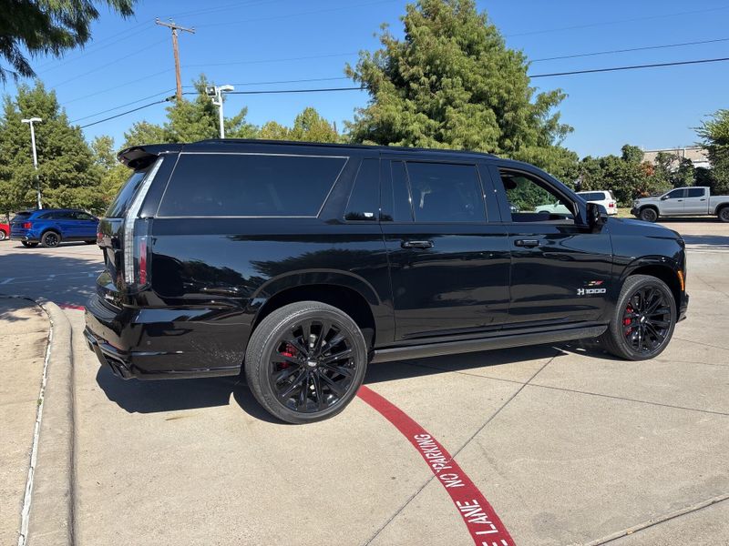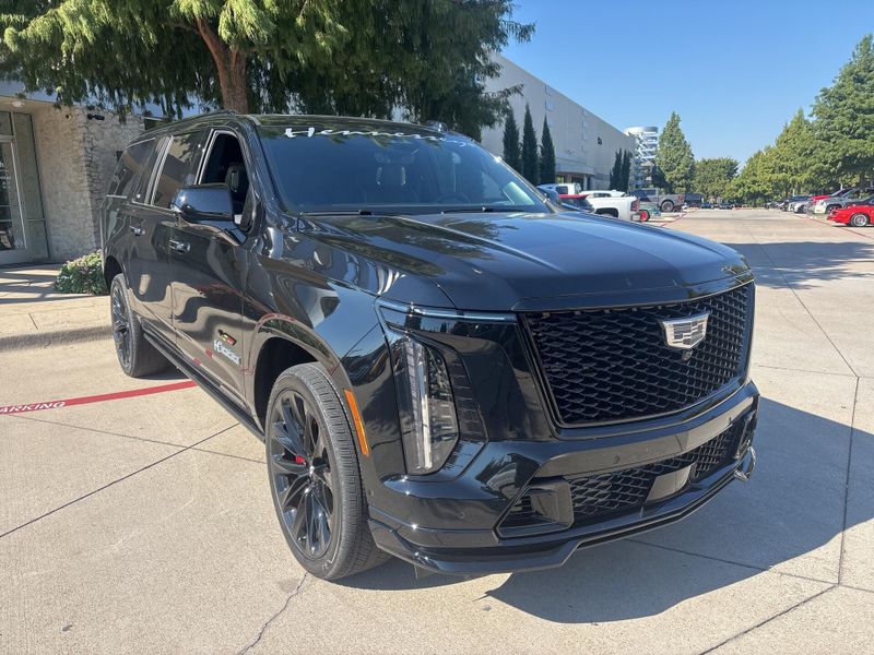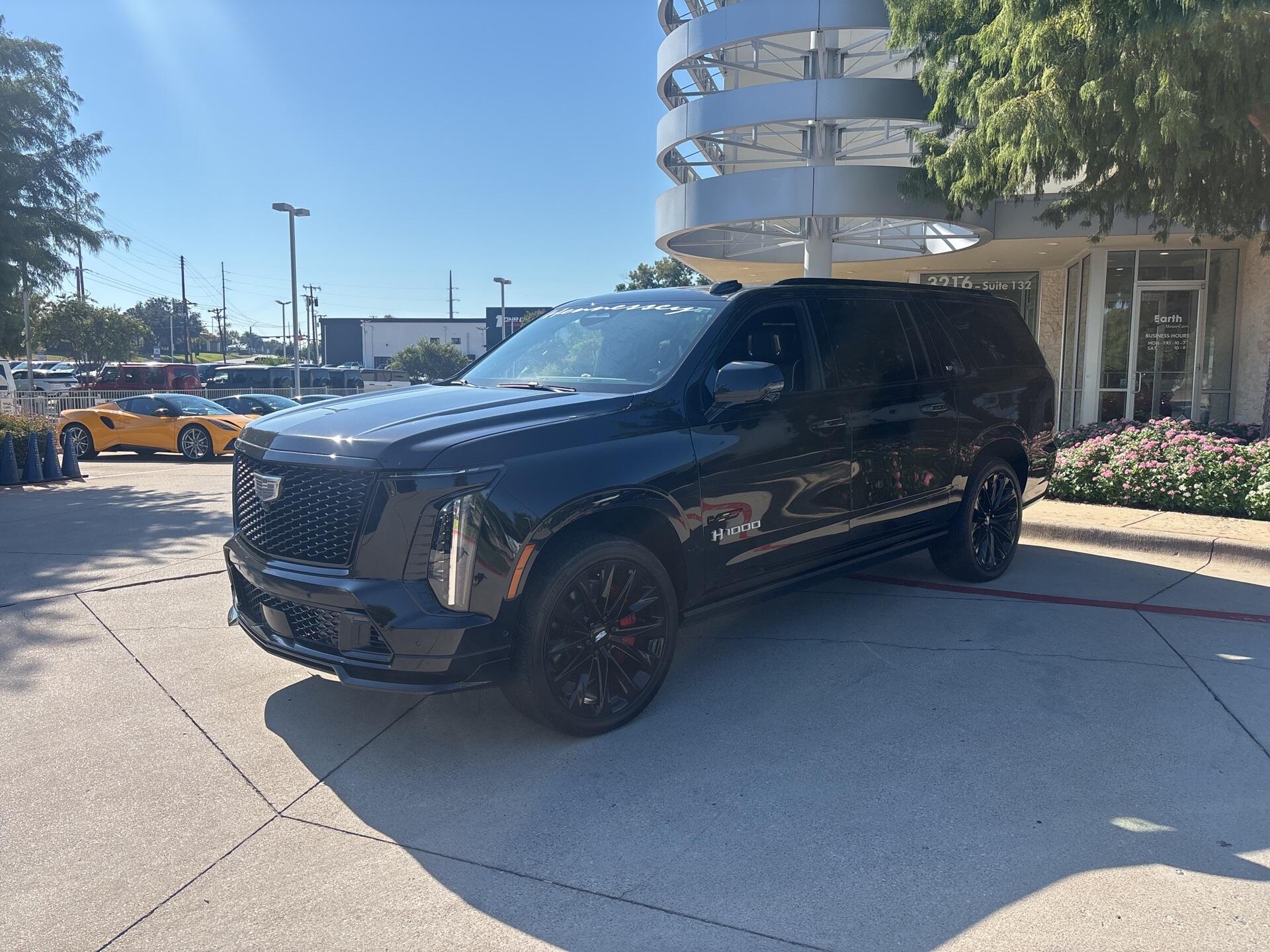 Earth MotorCars is Proud to offer this amazing: 2025 Cadillac Escalade ESV V-Series HENNESSEY H1000 Package CARFAX One-Owner. Clean CARFAX. HENNESSEY H1000, AWD, 3 Years SiriusXM, 3.23 Axle Ratio, 4-Wheel Disc Brakes, 8-Way Power Driver Seat Adjuster, 8-Way Power Front Passenger Seat Adjuster, Air Conditioning, Air Ride Adaptive Suspension, AKG Studio Reference 36-Speaker Audio System, Apple CarPlay/Android Auto, Auto High-beam Headlights, Auto tilt-away steering wheel, Automatic temperature control, Black Illuminated Cadillac Emblem (LPO), Blind Zone Steering Assist w/Trailering, Door Lock & Latch Shields, Driver door bin, Electronic Limited-Slip Differential, Exterior Parking Camera Rear, Glass Breakage Sensor, Gloss Black Escalade Nameplate (LPO), Heads-Up Display, Heated & Ventilated Driver & Front Passenger Seats, Hitch Guidance w/Hitch View, Illuminating Front & Rear Sill Plates, Integrated Trailer Brake Controller, Lane Departure Warning System, Navigation System, Next Generation Active Noise Cancellation, Night Vision, Onyx Package (LPO), Passenger door bin, Platinum Interior Trim, Power Liftgate, Power Lumbar Massage Driver Seat, Power Lumbar Massage Front Passenger Seat, Power Open/Close Doors, Power Panoramic Tilt-Sliding Sunroof, Power-Retractable Assist Steps, Preferred Equipment Group 1SD, Radio: Infotainment Experience, Rear Seat Entertainment System, Reconfigurable Full-Color Head-Up Display, Security system, SiriusXM w/360L Trial Subscription, Smart Trailer Integration Indicator, Soft Closing Front & Rear Doors, Speed control, Split folding rear seat, Theft-Deterrent Alarm System, Touring Package, Trailering App, Trailering Assist Guidelines, Turn signal indicator mirrors, Variably intermittent wipers, Vehicle Inclination Sensor, Vehicle Interior Movement Sensor, Wheels: 24'' Black Alloy (LPO), Wireless Apple CarPlay/Wireless Android Auto.