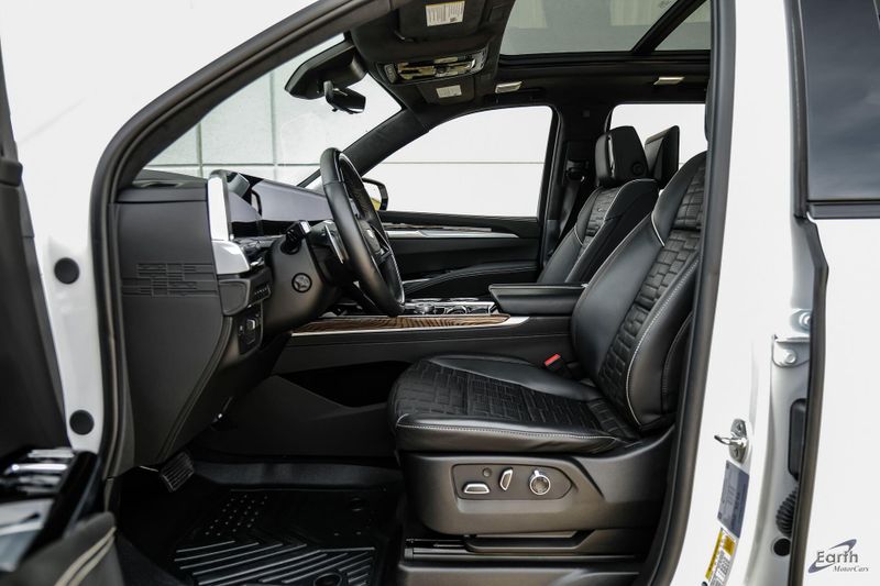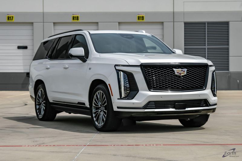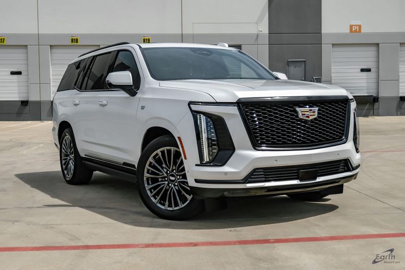 Earth MotorCars is Proud to offer this amazing: 2025 Cadillac Escalade Sport Platinum Night Vision HUD Super Cruise 22'' Wheels CARFAX One-Owner. Clean CARFAX. 4WD, Jet Black Leather, 2-Speed Active Transfer Case, 4-Wheel Disc Brakes, ABS brakes, Air Conditioning, Air Ride Adaptive Suspension, AKG Studio Reference 36-Speaker Audio System, Auto-dimming door mirrors, Automatic temperature control, Blind Zone Steering Assist with Trailering, Door Lock and Latch Shields, Dual front impact airbags, Dual front side impact airbags, Electronic Limited-Slip Differential, Exterior Parking Camera Rear, Floor Console with Covered Storage, Front Auxiliary 12-Volt Power Outlet, Glass Breakage Sensor, Heads-Up Display, Heated and Ventilated Driver and Front Passenger Seats, Hitch Guidance with Hitch View, Illuminated entry, Illuminating Front and Rear Sill Plates, Integrated Trailer Brake Controller, Magnetic Ride Control Suspension, Next Generation Active Noise Cancellation, Night Vision, Platinum Interior Trim, Power Liftgate, Power Lumbar Massage Driver Seat, Power Lumbar Massage Front Passenger Seat, Power Open/Close Doors, Power Panoramic Tilt-Sliding Sunroof, Power-Retractable Assist Steps, Preferred Equipment Group 1SH, Rear air conditioning, Rear Seat Entertainment System, Reconfigurable Full-Color Head-Up Display, Smart Trailer Integration Indicator, Soft Closing Front and Rear Doors, Theft-Deterrent Alarm System, Touring Package, Trailering App, Trailering Assist Guidelines, Variably intermittent wipers, Vehicle Inclination Sensor, Vehicle Interior Movement Sensor, Wheel Locks, Wheels: 22'' 18-Spoke Alloy.