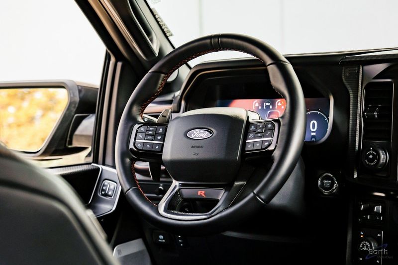 Earth MotorCars is Proud to offer this amazing: 2025 Ford F-150 Raptor R Twin Panel Moonroof Spray-In Toughbed Bedliner CARFAX One-Owner. 4WD, 4-Wheel Disc Brakes, ABS brakes, Air Conditioning, Auto High-beam Headlights, Auto-dimming door mirrors, Auto-dimming Rear-View mirror, Automatic temperature control, Code Orange Front Tow Hooks, Code Orange Stitching Doors & Instrument Panel, Delay-off headlights, Dual front impact airbags, Dual front side impact airbags, Dual Valve Shocks, Electronic Locking w/4.10 Axle Ratio, Electronic Stability Control, Equipment Group 803A Raptor R, Front Bucket Seats, Front Center Armrest, Fully automatic headlights, Heads-Up Display, Heated front seats, Heated rear seats, Illuminated entry, Interior Code Orange Raptor R Badging, Lane Departure Warning System, Leather Trimmed Seats, Modular Front Bumper, Navigation system: Connected Navigation, Panic alarm, Radio data system, Radio: B&O Unleashed Sound System by Bang & Olufsen, Rain sensing wipers, Raptor R Badge Tailgate Applique, Raptor R Exterior Graphics, Raptor R Exterior Theme, Raptor R Interior Theme, Raptor R Unique Grille, Raptor R Unique Hood Vent w/R Badge, Rear window defroster, RECARO w/Code Orange Stitching Front Seats, Removes 2KW Pro Power Onboard, Security system, Speed control, Speed-sensing steering, Steering wheel memory, Steering wheel mounted audio controls, SYNC 4 w/Enhanced Voice Recognition, Tough Bed Spray-In Bedliner, Traction control, Twin Panel Moonroof, Unique Carbon Fiber Appliques, Upgraded Dual Exhaust, Variably intermittent wipers, Ventilated front seats, Wheels: Raptor R Unique 17'' Forged Aluminum.