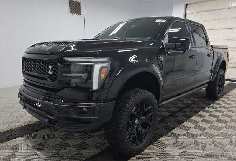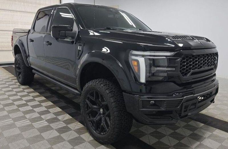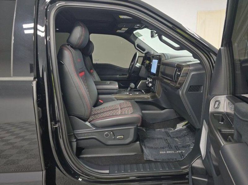 Earth MotorCars is Proud to offer this amazing: 2025 Ford F-150 Lariat Shelby 775HP Twin Panel Moonroof B&O Unleashed CARFAX One-Owner. CLEAN AUTOCHECK REPORT, Shelby Package Includes:, Horsepower: 785+ hp (supercharged), Torque: 635 - 685 lb-ft (supercharged), Exhaust: Borla performance exhaust with black tips, Suspension: Upgraded 4-corner adjustable Fox suspension system with live valve technology, Lift: Approx. 6 inches over factory height, Tires/Wheels: 35-inch all-terrain tires on 22-inch blacked-out alloy wheels, Exterior: Rock rails, power drop-down running boards, and a custom Shelby bed liner, Intake: Carbon fiber air intake, Fuel System: Upgraded fuel injectors, Exterior: Functional hood, Shelby rally stripes, and rocker stripes, Seating: Custom two-tone red and black leather seats with snake emblems, Details: Carbon fiber trim, serialized dash plaque, and billet racing pedals, Tech: 360-degree camera, B&O sound system, and digital dash, 4WD, 2nd Row Heated Seats, 4 Pickup Box Tie-Down Plates, 4-Wheel Disc Brakes, ABS brakes, ActiveX Trimmed Bucket Seats (B), Adjustable pedals, Air Conditioning, Ambient Lighting - Ice Blue Color Only, Auto-dimming Rear-View mirror, Automatic temperature control, Bed Utility Package, Black Exterior Badging, Black Grille, Black Taillamp Bezels, Body-Color Front & Rear Bumpers, Body-Color Skull Caps & Door Handles, Console Worksurface, Dark Interior Appliques, Dual front impact airbags, Dual front side impact airbags, Electronic Locking w/3.73 Axle Ratio, Electronic Stability Control, Equipment Group 502A High, Front Bucket Seats, Front Center Armrest, Front wheel independent suspension, Fully automatic headlights, Gray Box Side Decal, Heads-Up Display, Heated front seats, Illuminated Driver & Passenger Visors, Lariat Black Appearance Package, LED Box Lighting, Matte Black Tailgate F-150 Decal, Mobile Office Package, Partitioned Lockable Rear Storage, Power Tailgate, Power-Sliding Rear Window, Pro Access Tailgate, Radio: B&O Unleashed Sound System by Bang & Olufsen, Rear window defroster, Remote keyless entry, Speed control, Steering wheel mounted audio controls, Tachometer, Twin Panel Moonroof, Variably intermittent wipers, Ventilated front seats, Voltmeter, Wheel Well Liner, Wheels: 20'' Chrome-Like PVD, Wireless Charging.