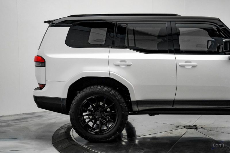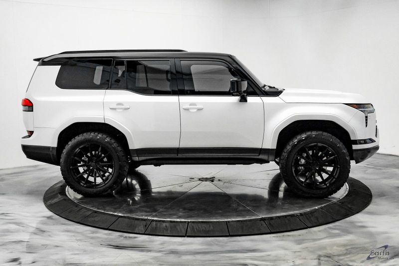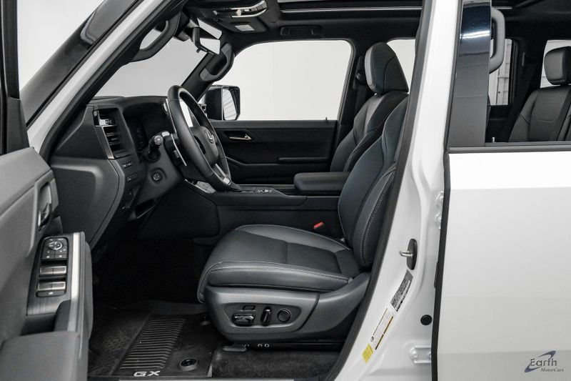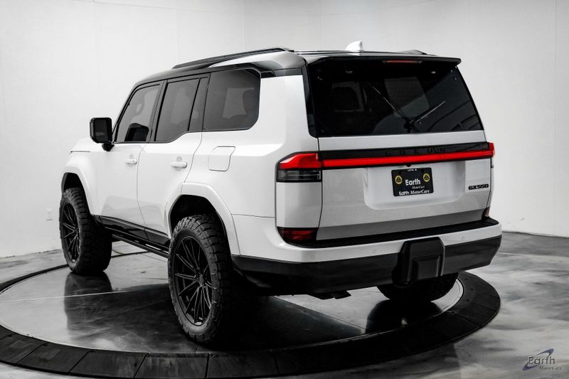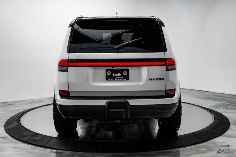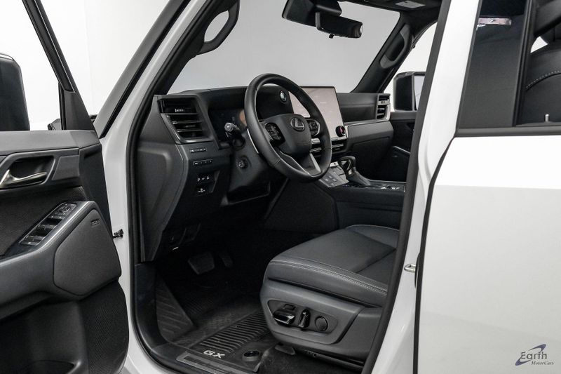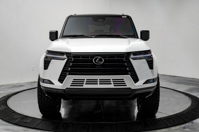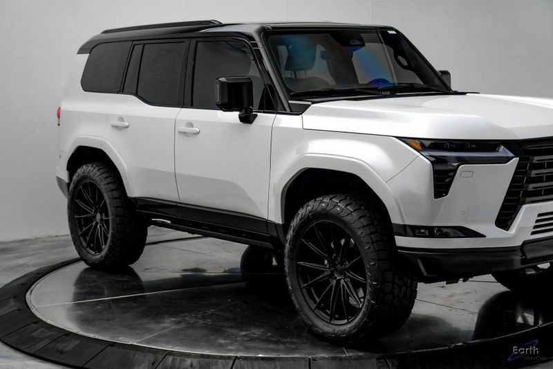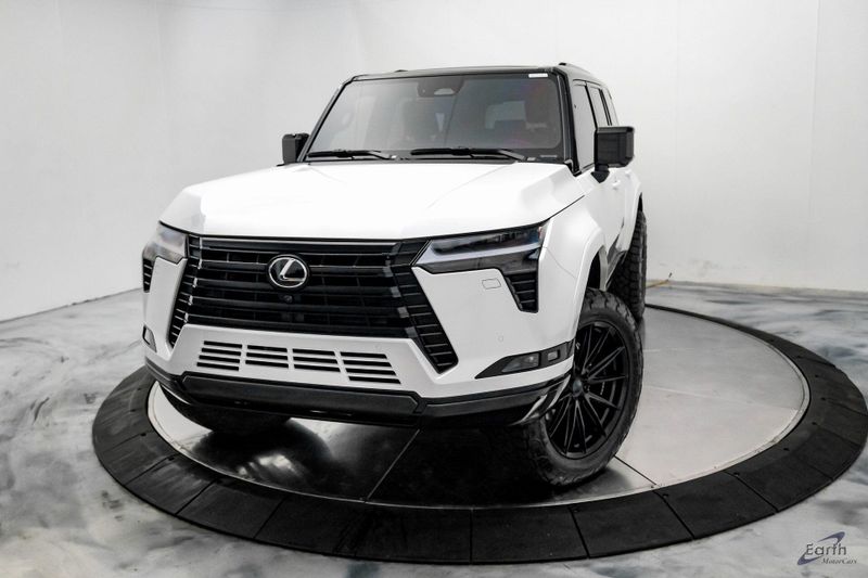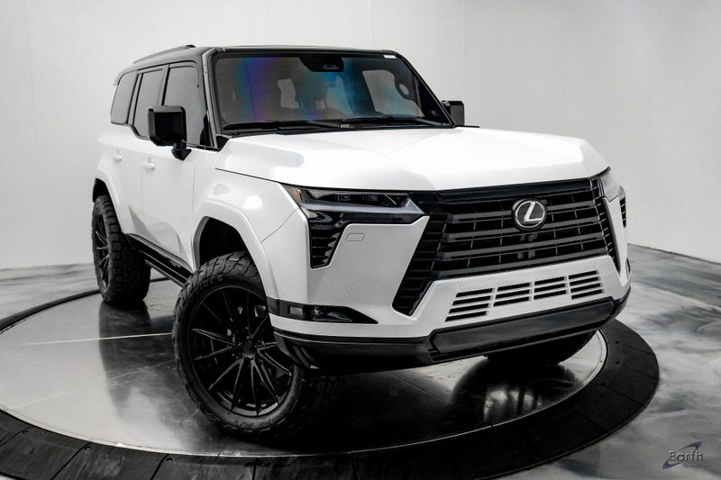 Earth MotorCars is Proud to offer this amazing: 2025 Lexus GX 550 Luxury+ 22'' VOSSEN WHEELS LEVEL KIT TOYO AT3 TIRES Clean CARFAX. WESCOTT LEVEL KIT, 22'' VOSSEN WHEELS, TOYO AT3 TIRES, BLACK TUXEDO WRAP ON ROOF & MIRRORS, Premium Paint 500.00, Mark Levinson(R) Premium Audio System, Dynamic Sky(TM) Panorama Glass Roo, Power Retractable Running Boards, Digital Rearview Mirror, Cool Box, Semi-Aniline Leather-Trimmed Heated and Ventilated, Driver and Front Passenger Massaging Seats, Power Rear Door with Kick Sensor, Panoramic View Monitor, 3rd row seats: split-bench, 4-Wheel Disc Brakes, ABS brakes, Air Conditioning, All-Weather Cargo Mat, Alloy wheels, Auto tilt-away steering wheel, Auto-dimming door mirrors, Auto-dimming Rear-View mirror, Automatic temperature control, Ball Mount, Brake assist, Bumpers: body-color, Cold Area Package, Digital Key, Driver Monitor Camera, Dual front impact airbags, Dual front side impact airbags, Electronic Stability Control, Exterior Parking Camera Rear, Four wheel independent suspension, Front Bucket Seats, Front Cross Traffic Alert-Braking, Fully automatic headlights, Head-Up Display, Headlamp Washer, Heated & Ventilated Front Bucket Seats, Illuminated entry, Key Gloves, Lane Change Assist, Panic alarm, Power Liftgate, Rear air conditioning, Rear window defroster, Rear window wiper, Security system, Speed control, Speed-sensing steering, Steering wheel mounted audio controls, Tonneau Cover, Traction control, Traffic Jam Assist, Variably intermittent wipers, Wheel Locks, Windshield Wiper De-Icer.
