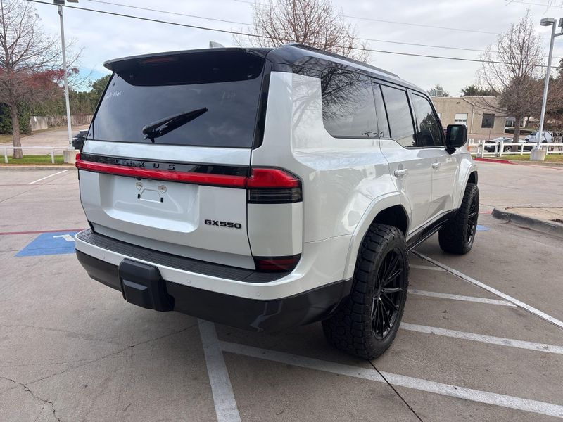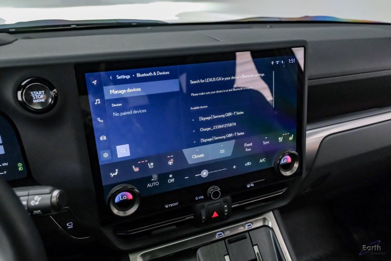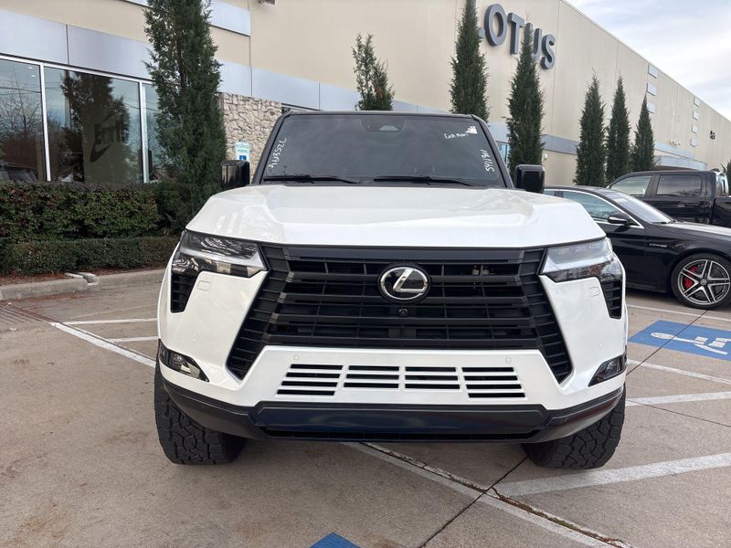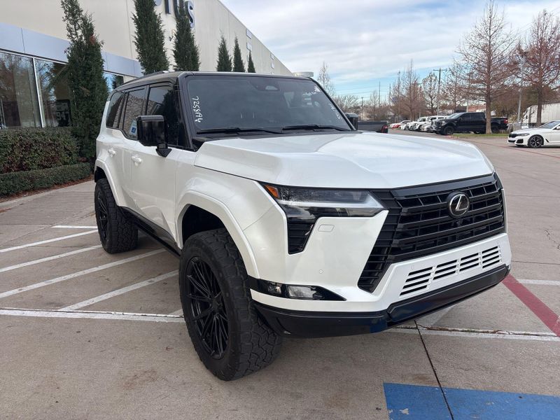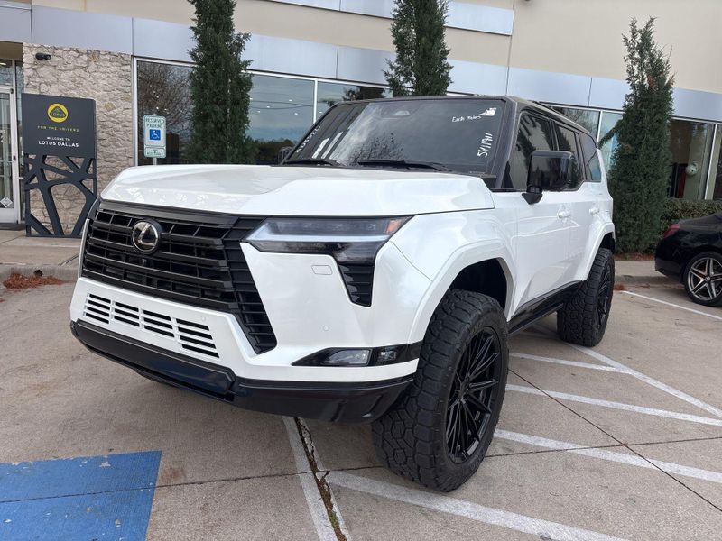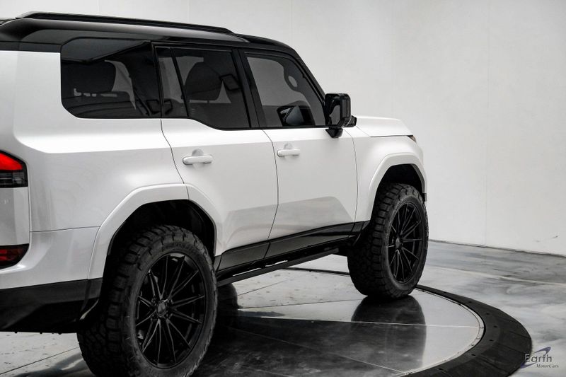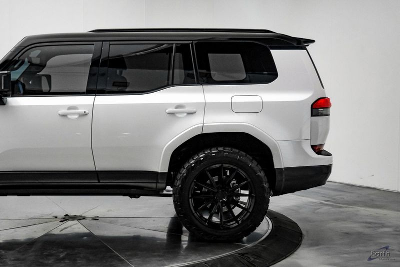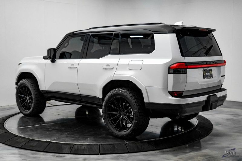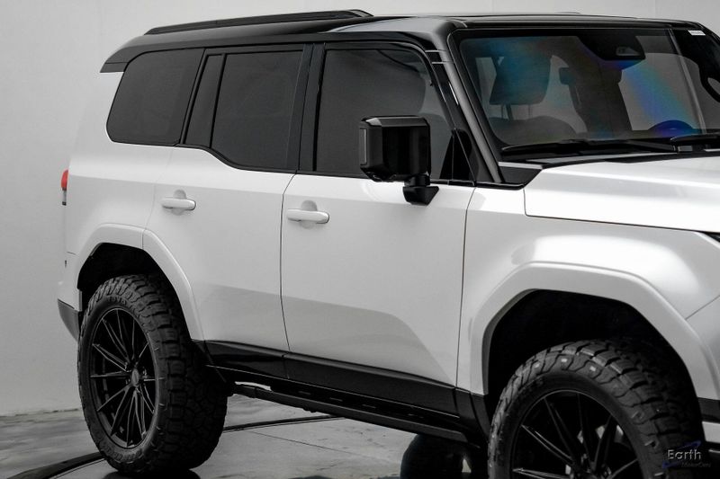 Earth MotorCars is Proud to offer this amazing: 2025 Lexus GX 550 Luxury+ 22'' VOSSEN WHEELS LEVEL KIT TOYO AT3 TIRES Clean CARFAX. WESCOTT LEVEL KIT, 22'' VOSSEN WHEELS, TOYO AT3 TIRES, BLACK TUXEDO WRAP ON ROOF & MIRRORS, Premium Paint 500.00, Mark Levinson(R) Premium Audio System, Dynamic Sky(TM) Panorama Glass Roo, Power Retractable Running Boards, Digital Rearview Mirror, Cool Box, Semi-Aniline Leather-Trimmed Heated and Ventilated, Driver and Front Passenger Massaging Seats, Power Rear Door with Kick Sensor, Panoramic View Monitor, 3rd row seats: split-bench, 4-Wheel Disc Brakes, ABS brakes, Air Conditioning, All-Weather Cargo Mat, Alloy wheels, Auto tilt-away steering wheel, Auto-dimming door mirrors, Auto-dimming Rear-View mirror, Automatic temperature control, Ball Mount, Brake assist, Bumpers: body-color, Cold Area Package, Digital Key, Driver Monitor Camera, Dual front impact airbags, Dual front side impact airbags, Electronic Stability Control, Exterior Parking Camera Rear, Four wheel independent suspension, Front Bucket Seats, Front Cross Traffic Alert-Braking, Fully automatic headlights, Head-Up Display, Headlamp Washer, Heated & Ventilated Front Bucket Seats, Illuminated entry, Key Gloves, Lane Change Assist, Panic alarm, Power Liftgate, Rear air conditioning, Rear window defroster, Rear window wiper, Security system, Speed control, Speed-sensing steering, Steering wheel mounted audio controls, Tonneau Cover, Traction control, Traffic Jam Assist, Variably intermittent wipers, Wheel Locks, Windshield Wiper De-Icer.