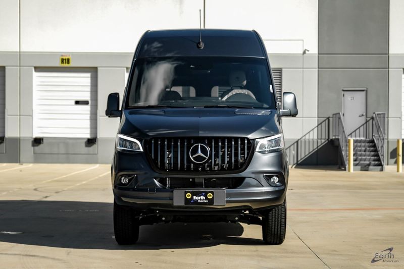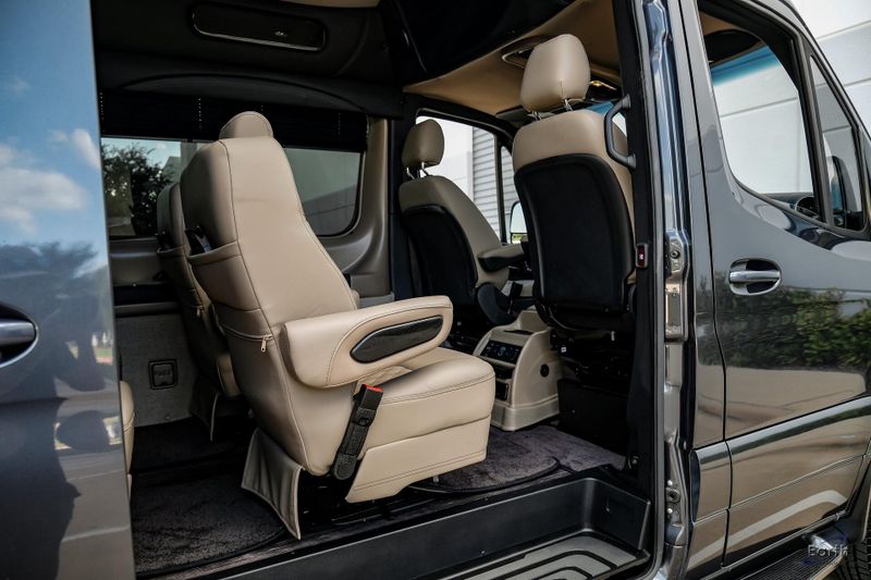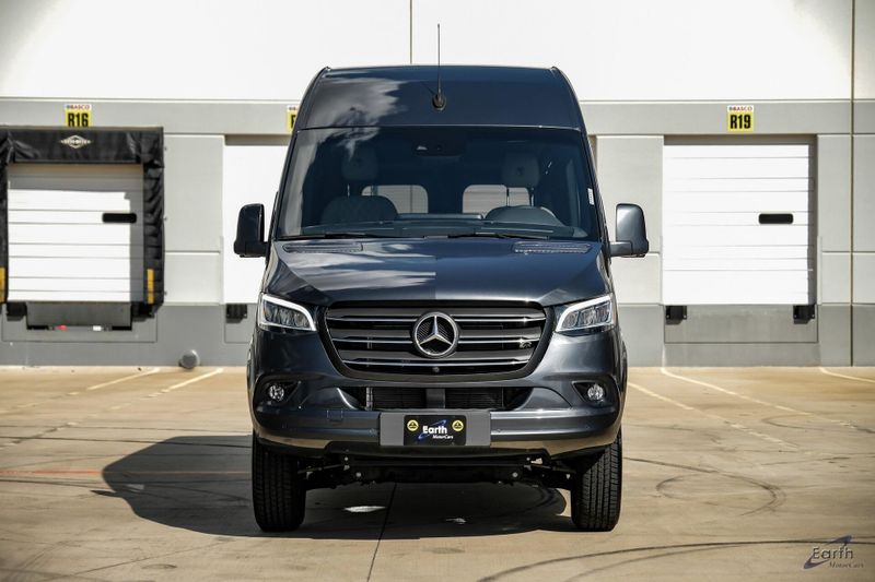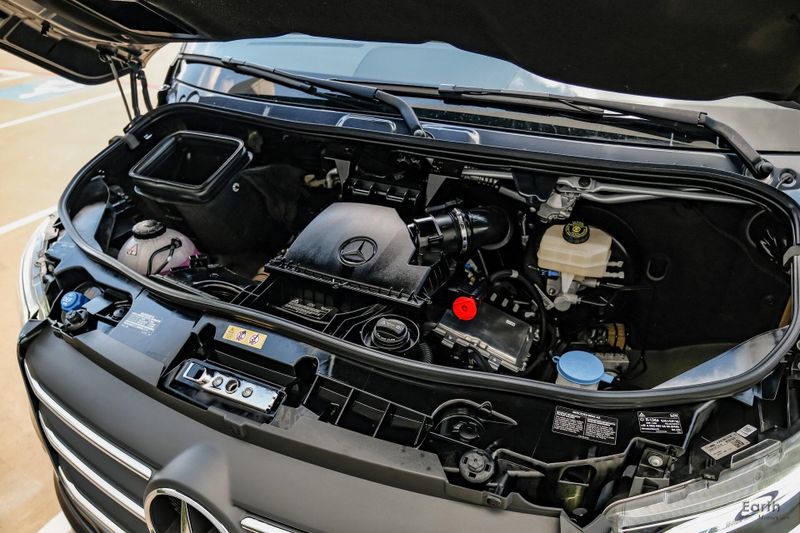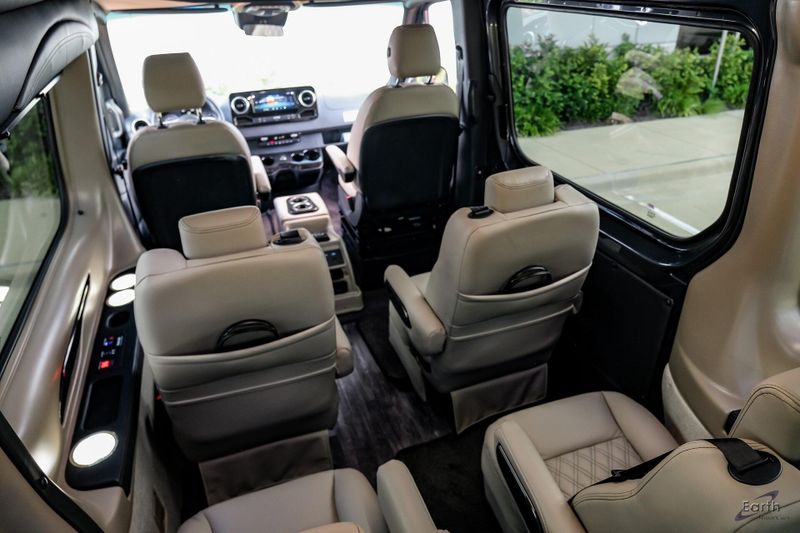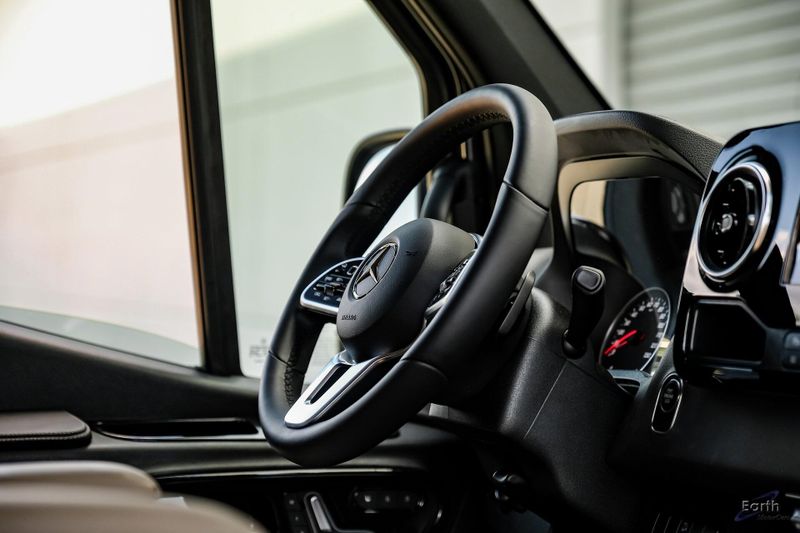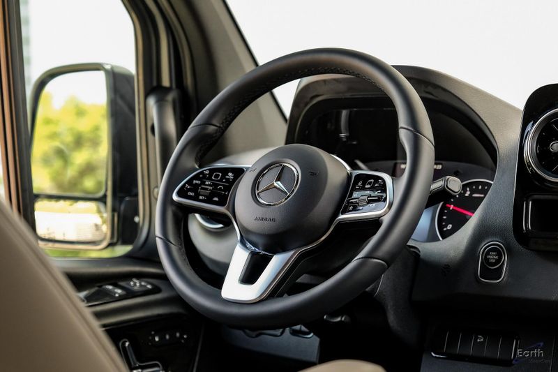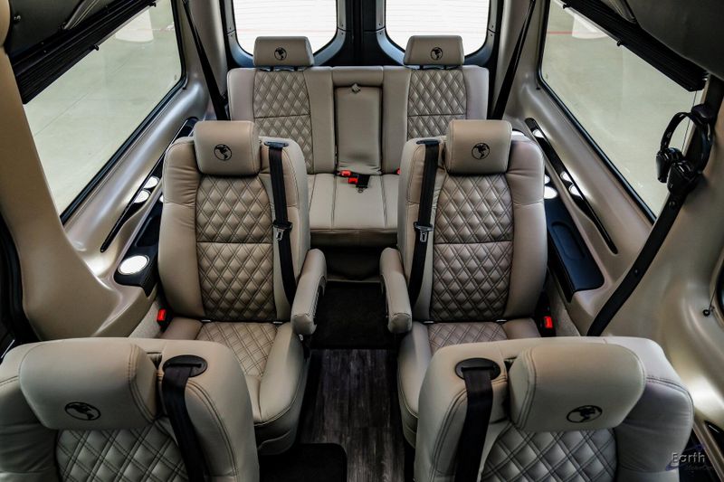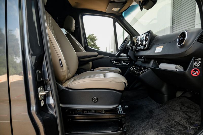 Built upon a LOADED 2023 Mercedes-Benz 2500 with a high roof, this van has been transformed into a 2025 ''Earth Explorer'' with seating capacity for 9 passengers. This luxurious recreational Sprinter comes finished in Iridium Silver over custom Black upholstery with diamond-quilted seating, swiveling captains chairs, custom faux wood-style flooring, rear heating & air conditioning, a 32 LED Smart TV, and much more. Also fitted with custom running boors and 16 aluminum wheels.Beneath the hood lies a turbocharged 3.0-liter V6 diesel engine generating 188 HP and 325 lb.-ft of torque to the rear wheels through a 7-speed automatic transmission. Performance features include anti-roll bars, a front independent suspension, power steering, 4-wheel disc brakes with ABS, Brake Assist, and Electronic Stability Control.