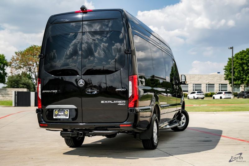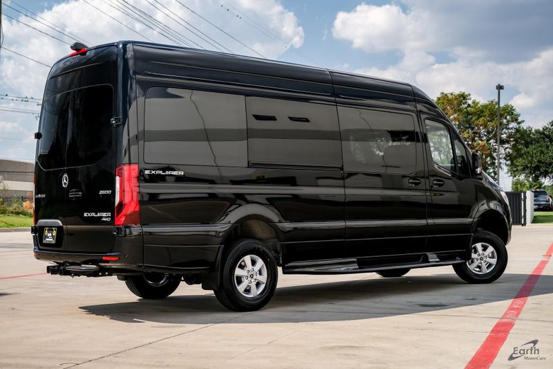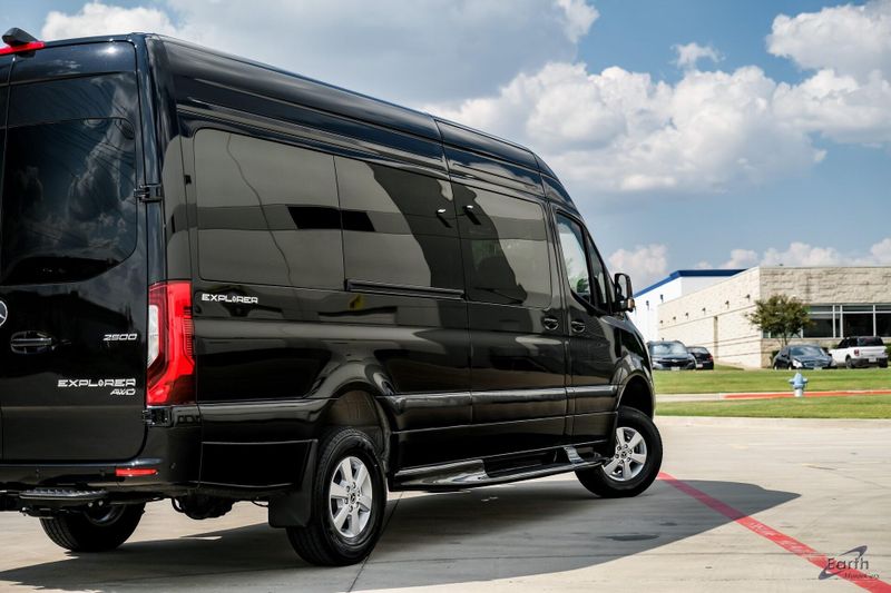 Earth MotorCars is Proud to Present This: Brand New 2025 Mercedes-Benz Sprinter 2500 Earth Explorer Custom 9 Pass 170 WB High Roof AWD Custom. BUILT ON A BRAND NEW 2025 Mercedes chassis. 1000 watt power inverter, 32'' LED Smart TV, Entertainment center, Head Phones, Window Shades, Custom Diamond Stitched Swivel Captain Chairs, Custom Diamond Stitched Rear folding Bench seat, Lighting Package, USB Plugs throughout, Custom 16'' Aluminum Wheels, Custom Running Boards, Custom Faux Wood Style Flooring, Full Glass Package, Rear Heating and AC and so much more! Clean CARFAX. 2 Additional Master Keys, ABS brakes, Additional Battery Cutoff Relay, All Wheel Drive Package, ATTENTION ASSIST, Auxiliary Fuel Sending Unit w/Fuel Tap, Bodyside moldings, Brake assist, Conversion to RV Requirement, Driver Convenience Package, Electrically Folding Exterior Mirrors, Electronic Stability Control, Emergency communication system, Engine Compartment Additional Battery, ESP for Increased Center of Gravity above 39.4'', Exterior Parking Camera Rear, Front Engine Bracket for Additional Alternator, Fully automatic headlights, Heated door mirrors, Hinged Lid for Left & Right Storage Compartments, Illuminated entry, Low tire pressure warning, MBUX Multimedia 6-Hour Runtime, Navigation, Optimized Aux Fuel Tap Fuel Gauge, Overhead console, Parametric Special Module (PSM), Power door mirrors, Radio: MBUX Multimedia System w/7'' Touchscreen, Rain Sensor, Rear End Wide Step, Remote keyless entry, Roof Rack Mounting Rails, RV Suspension Bundle, RV Technical Bundle, SiriusXM Satellite Radio, Speed control, Speed-sensing steering, Tilt steering wheel, Traction control.