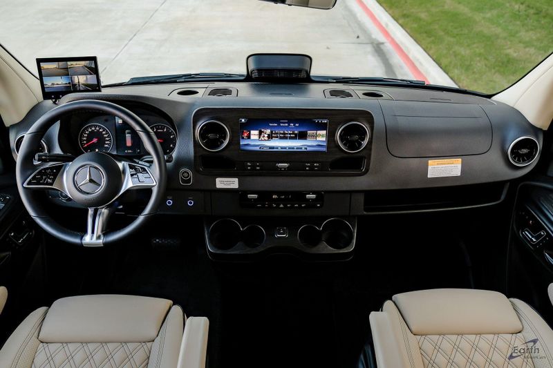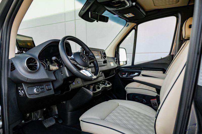 Earth MotorCars is Proud to offer this amazing MSRP $259,613 2026 OGV V-Cruise 10OBA AWD 10 Passenger Mercedes Benz Sprinter on a 2025 Chassis. Features Include: Air Ride Suspension, Cream Heated and Massaging Captains Chairs, Black Oak Satin Trim, Luxury Seating, Microwave, Refrigerator/Freezer, Sink, Toilet, Apple TV, Wireless Internet Router, Starlink Prep, 4 Camera w/Quad View Display, Tailgate Prep Kit, 2000W Inverter, 270Ah Lithium Battery, Garmin Controls and SO MUCH MORE! Chassis Features include: V Power Outlet Driver Seat Base, Acoustic Package, Active Distance Assist DISTRONIC, Active Lane Keeping Assist, All Wheel Drive Package, Alternator 14V/280A, Attention Assist, Auxiliary Fuel Sending Unit w/Fuel Tap, Blind Spot Assist, Brake assist, Chrome Grille Package, Chrome Trimmed Radiator Grille, Comfort Head Restraint, Driver, Comfort Head Restraint, Passenger, Comfort Overhead Control Panel, Comfort Package, Comfort Plus Package w/Heated Steering Wheel, Digital Rearview Mirror, Drive Assist Package, Driver & Passenger Door-Mounted Assist Handles, Driver Convenience Package, Driver Seat Lumbar Support, Dual rear wheels, Electric Sliding Door Right, Electrically Adjustable Driver's Seat, Electrically Adjustable Front Passenger Seat, Electronic Stability Control, ESP for Increased Center of Gravity above 39.4'', Exterior Lighting Package, Exterior Parking Camera Rear, Fog Lamps w/Cornering Light Function, Front Engine Bracket For Additional Alternator, Fully automatic headlights, Heat Insulation For Front Compartment, Heated door mirrors, Heated Driver's Seat, Heated Front Passenger Seat, Heated front seats, Heated Steering Wheel, High Beam Assist, Hinged Lid for Left & Right Storage Compartments, Hinged Lid for Storage Compartment, Illuminated entry, Instrument Panel Front-to-Rear Outlet, Intelligent Navigation, Leather Steering Wheel, LED High Performance Headlamps, Low Driver's Seat Frame, Low tire pressure warning, MBUX Multimedia 6-Hour Runtime, MBUX Navigation, MBUX Package, Moving Off Information System, Optimized Aux Fuel Tap Fuel Gauge, Parametric Special Module (PSM), Parking Package, Partial LED Tail Lights, Passenger Seat Lumbar Support, Passenger's Seat Base, Power door mirrors, Radiator Grille Frame in Vehicle Color, Radio: MBUX Multimedia System w/10.25'' Touchscreen, Rain sensing wipers, Remote keyless entry, RV Technical Bundle, Sirius XM Satellite Radio, Smartphone Integration Package, Speed control, Speed-sensing steering, Steering wheel mounted audio controls, Swivel Base for Driver's Seat, Swivel Base For Passenger's Seat, Swivel Seat Package, THERMOTRONIC Automatic Climate Control, Tilt steering wheel, Traction control, Wet Wiper System.