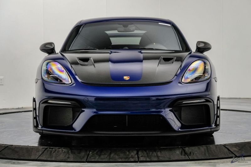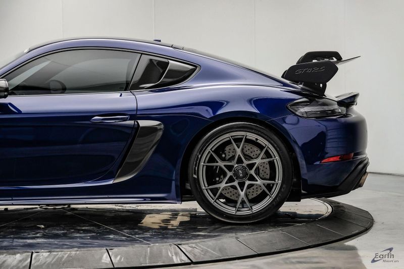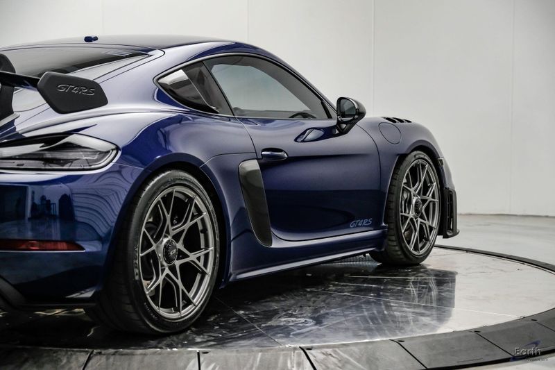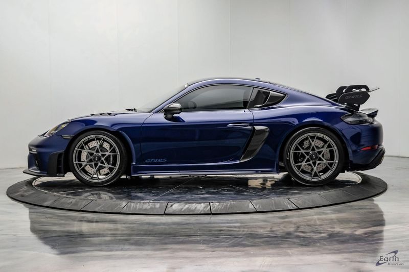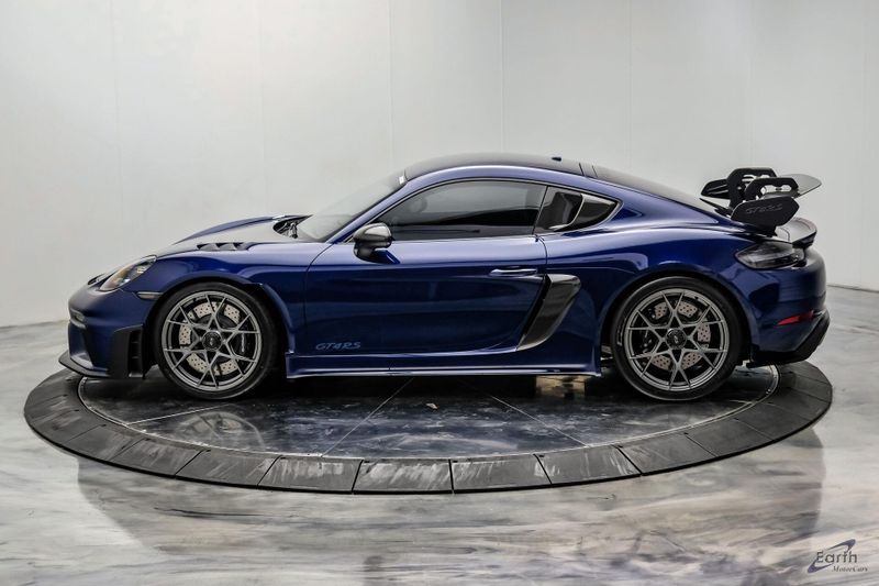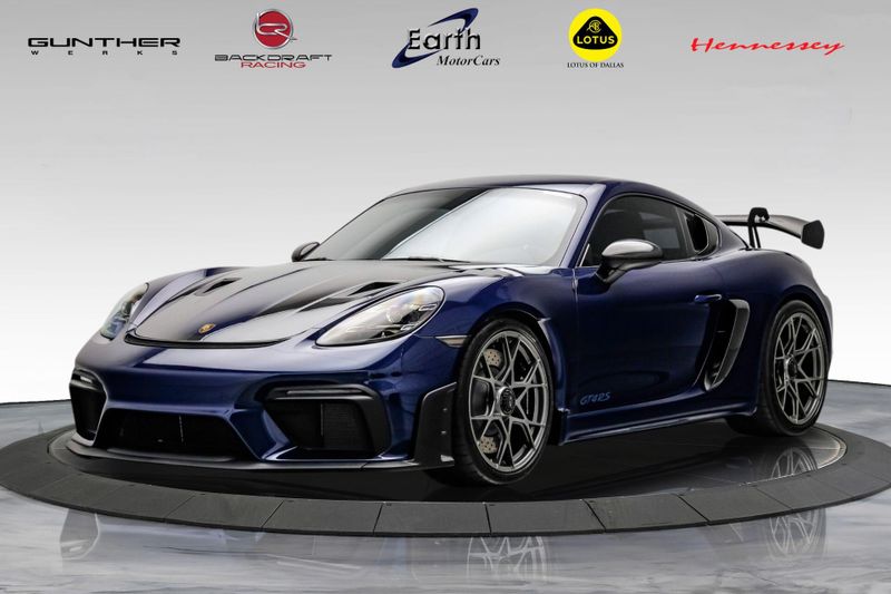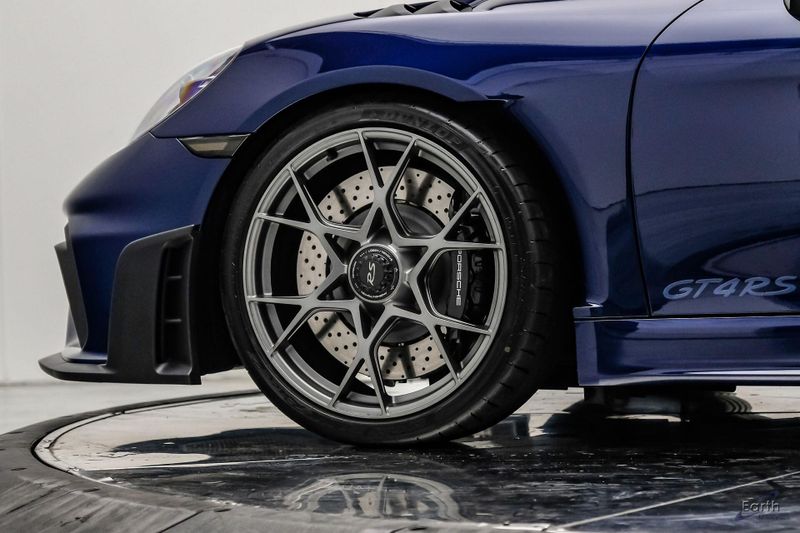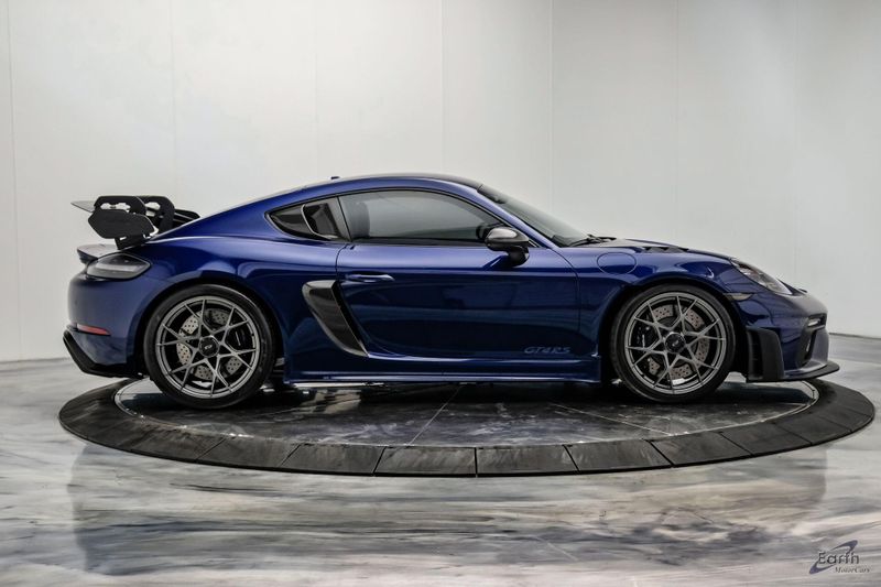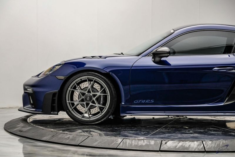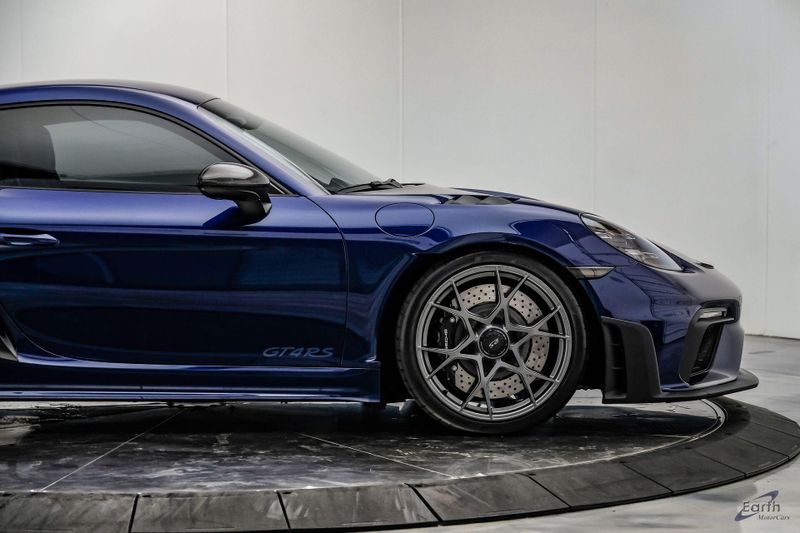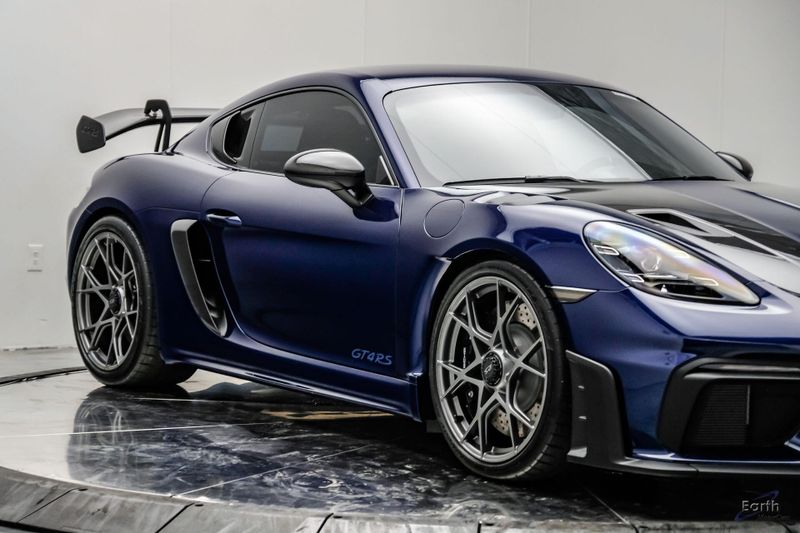 Earth MotorCars is Proud to offer this amazing: 2025 Porsche 718 Cayman GT4 RS Weissach Package Front Lift Chrono Pkg $31k in Options CARFAX One-Owner. Clean CARFAX. CLEAN AUTOCHECK REPORT, Gentian Blue Metallic $3,540.00, 4-Wheel Disc Brakes, ABS brakes, Accent Package Logos, Adaptive suspension, Air Conditioning, Auto Dimming Mirrors with Integrated Rain Sensor, Automatic temperature control, BOSE Surround Sound System, Brake Calipers in High Gloss Black, Bumpers: body-color, Chrono Package, Dual front impact airbags, Dual front side impact airbags, Exterior Parking Camera Rear, Four wheel independent suspension, Front Axle Lift System, Front Bucket Seats, Front Center Armrest, Front Trunk Lid and Wing in Exposed Carbon Fiber, Full Bucket Seats, Fully automatic headlights, Illuminated entry, LED Headlights with Porsche Dynamic Light System, Light Design Package, Rear window defroster, Remote keyless entry, Seat Belts in Deep Sea Blue, Security system, Speed control, Spoiler, Sun Visors in Race-Tex, Tachometer, Tilt steering wheel, Traction control, Two-Tone Leather/Race-Tex Seat Trim with I.c.w. Weissach Pacakge, Variably intermittent wipers, Weissach Package, Wheels: 20'' 718 Cayman GT4 RS Forged Aluminum, Window Triangle Trims in Carbon Fiber.