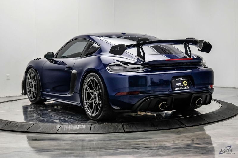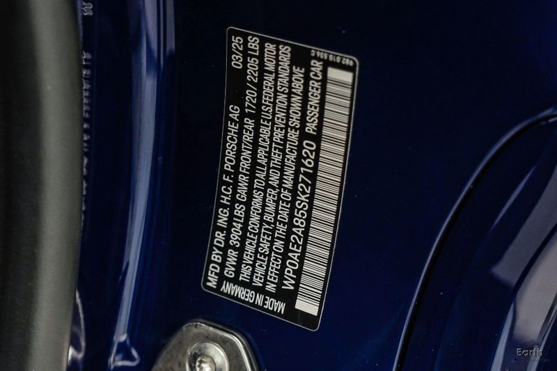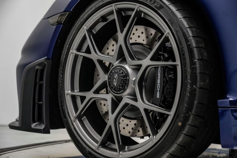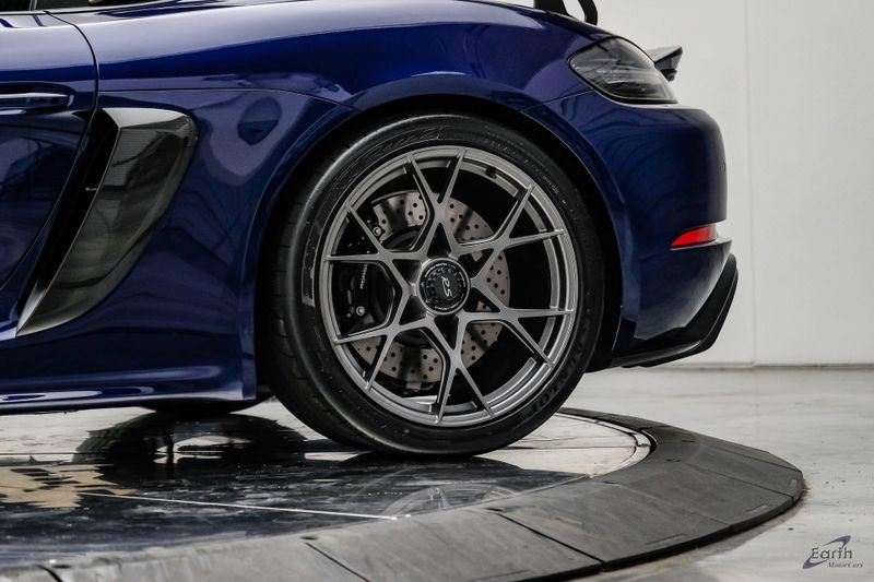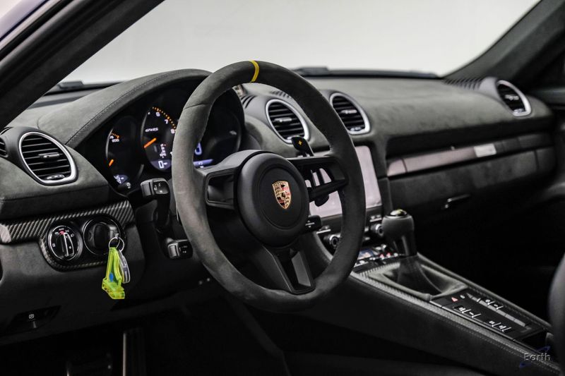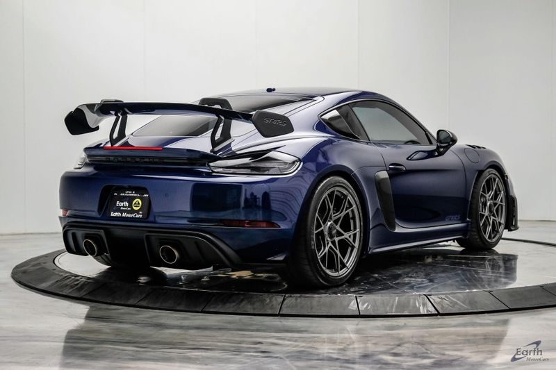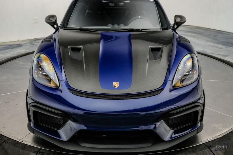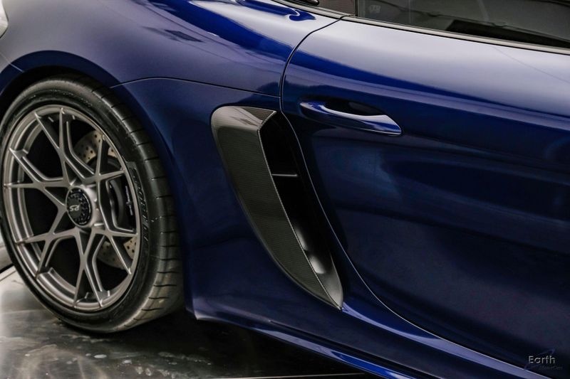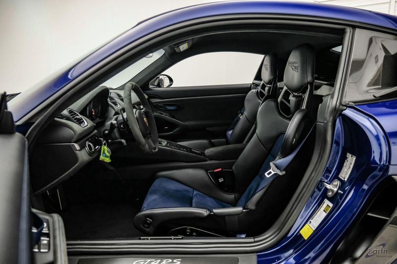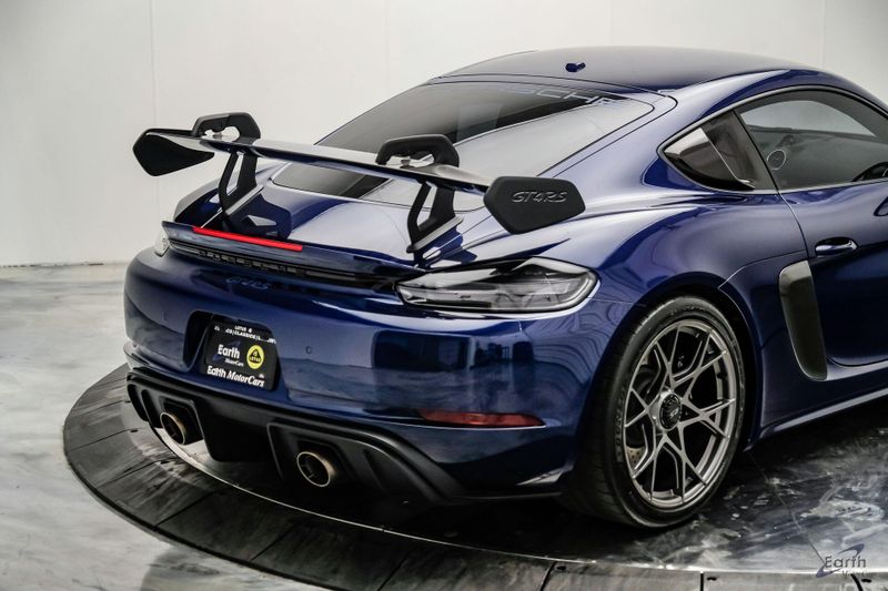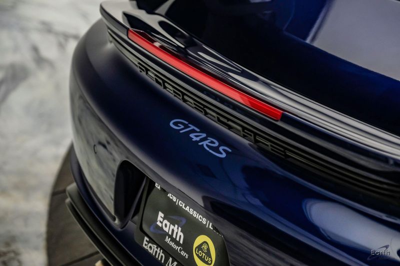 Earth MotorCars is Proud to offer this amazing: 2025 Porsche 718 Cayman GT4 RS Weissach Package Front Lift Chrono Pkg $31k in Options CARFAX One-Owner. Clean CARFAX. CLEAN AUTOCHECK REPORT, Gentian Blue Metallic $3,540.00, 4-Wheel Disc Brakes, ABS brakes, Accent Package Logos, Adaptive suspension, Air Conditioning, Auto Dimming Mirrors with Integrated Rain Sensor, Automatic temperature control, BOSE Surround Sound System, Brake Calipers in High Gloss Black, Bumpers: body-color, Chrono Package, Dual front impact airbags, Dual front side impact airbags, Exterior Parking Camera Rear, Four wheel independent suspension, Front Axle Lift System, Front Bucket Seats, Front Center Armrest, Front Trunk Lid and Wing in Exposed Carbon Fiber, Full Bucket Seats, Fully automatic headlights, Illuminated entry, LED Headlights with Porsche Dynamic Light System, Light Design Package, Rear window defroster, Remote keyless entry, Seat Belts in Deep Sea Blue, Security system, Speed control, Spoiler, Sun Visors in Race-Tex, Tachometer, Tilt steering wheel, Traction control, Two-Tone Leather/Race-Tex Seat Trim with I.c.w. Weissach Pacakge, Variably intermittent wipers, Weissach Package, Wheels: 20'' 718 Cayman GT4 RS Forged Aluminum, Window Triangle Trims in Carbon Fiber.