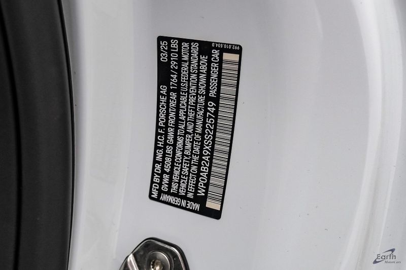 Earth MotorCars is Proud to offer this amazing: 2025 Porsche 911 Carrera GTS Hard Loaded Clean CARFAX. Front Axle Lift System, 3.6L H6 Hybrid Turbocharged DOHC 24V LEV3-ULEV70, 4-Way Sport Seats Plus, 4-Wheel Disc Brakes, 8 Speakers, ABS brakes, Adaptive Cruise Control, Adaptive suspension, Air Conditioning, Auto High-beam Headlights, Auto-dimming door mirrors, Auto-dimming Rear-View mirror, Automatic temperature control, BOSE Surround Sound System, Brake assist, Driver vanity mirror, Dual front impact airbags, Dual front side impact airbags, Electric Slide/Tilt Glass Sunroof, Extended Range 22.1 Gallon Fuel Tank, Exterior Parking Camera Rear, Front Axle Lift System, Front Bucket Seats, Front Center Armrest, Front reading lights, Fully automatic headlights, Garage door transmitter: HomeLink, HD-Matrix Design LED Headlights in Black, Heated front seats, Heated steering wheel, Ionizer, Leather/Race-Tex Seat Trim, Navigation system: Porsche Communication Management (PCM), Outside temperature display, Overhead console, Passenger vanity mirror, Porsche Communication Management, Power door mirrors, Power driver seat, Power passenger seat, Power steering, Premium Package w/Remote ParkAssist, Radio data system, Rear fog lights, Remote ParkAssist, Security system, Sound Package Plus, Speed control, Sport steering wheel, Steering wheel mounted audio controls, Storage Net in Passenger Footwell, Telescoping steering wheel, Tilt steering wheel, Tri-Zone A/C, Wheels: 20'' Front/21'' Rear Carrera GTS.