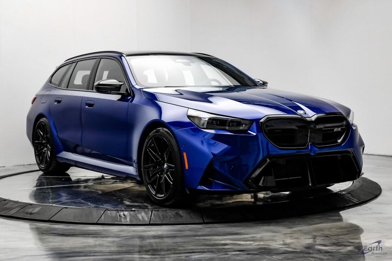 Earth MotorCars is Proud to offer this amazing: 2026 BMW M5 Touring Driving Assist Executive Pkg Carbon Fiber Clean CARFAX. Black w/Extended Merino Leather Upholstery, 4-Wheel Disc Brakes, ABS brakes, Adaptive suspension, Air Conditioning, Alloy wheels, Auto High-beam Headlights, Auto-dimming door mirrors, Automatic temperature control, BMW Curved Display w/HUD, BMW Iconic Glow Kidney Grille, Connected Package Pro Limited Term, Driving Assistance Professional Package, Driving Assistant Professional, Dual front impact airbags, Dual front side impact airbags, Electronic Stability Control, Executive Package, Exterior Parking Camera Rear, Four wheel independent suspension, Front & Rear Heated Seats, Front Bucket Seats, Front Ventilated Seats, Heated door mirrors, Heated Front Seats, Heated front seats, Illuminated entry, Interior Camera, Lane Change Assistant, Low tire pressure warning, Navigation System, Parking Assistant Plus, Partial Automated Driving, Power Liftgate, Rain sensing wipers, Rear dual zone A/C, Rear Manual Side Window Shades, Remote keyless entry, Security system, Speed-sensing steering, Speed-Sensitive Wipers, Steering wheel mounted audio controls, Traction control, Traffic Jam Assistant, Tri-Zone A/C, Variably intermittent wipers, Wheels: 20'' x 10.5'' Fr & 21'' x 11'' Rr M Dual-Spoke.