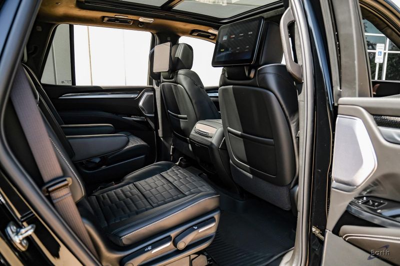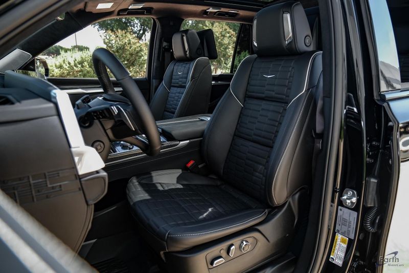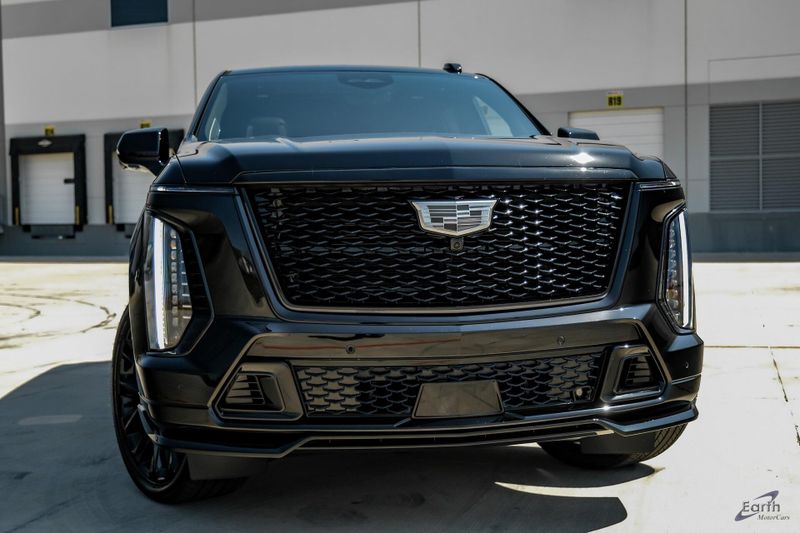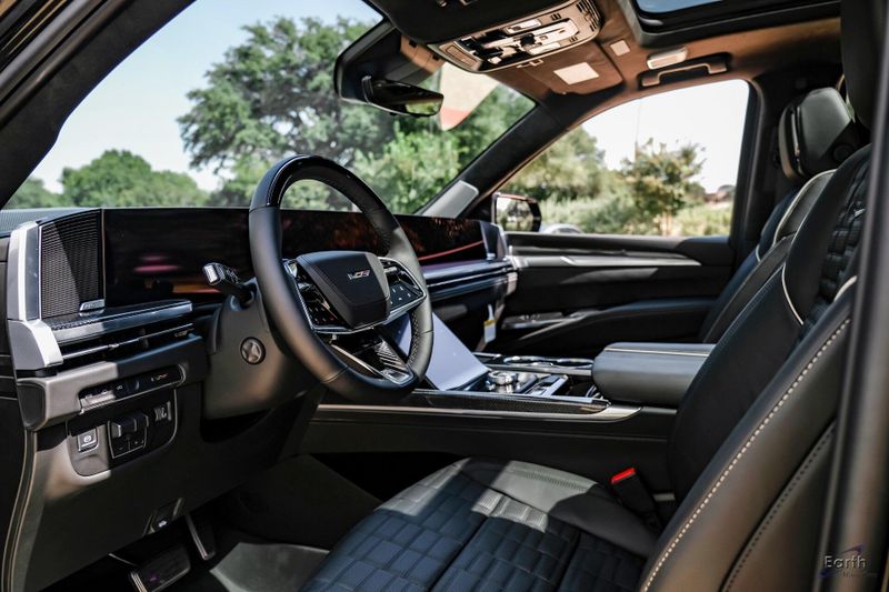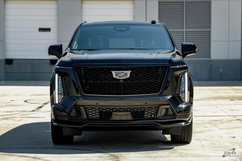 Earth MotorCars is Proud to offer this amazing: 2026 Cadillac Escalade V-Series HENNESSEY HPE 1000 Package in Black Raven! Estimated completion 12/05/2025. 1,005 HP @ 6,400 rpm 882 lb-ft torque @ 4,300 rpm Upgraded High-Flow Supercharger System Upgraded Upper Pulley for Increased Boost Pressure Upgraded Lower Pulley Custom Hennessey Camshaft High-Performance Throttle Body Ported Cylinder Heads Auxiliary Fuel System Upgrade High-Flow Air Induction System Upgraded Valve Springs and Retainers Upgraded Intake Valves and Exhaust Valves Upgraded Lifters and Push Rods Anodized Red Valvetrain Covers Oversized Heat Exchanger Upgrade Long-Tube Stainless Steel Headers Crankcase Ventilation System High-Flow Catalytic Converters All Necessary Gaskets and Fluids Professional Installation HPE Engine Management Calibration Chassis Dyno Tuning Road Testing (Up To 500 Miles) Serial-Numbered Engine Bay Plaque Hennessey & H1000 Exterior Badging. Options include: Onyx Package, AWD, Jet Black w/Full Semi-Aniline Leather Seats w/Mondrian Quilting, 1st & 2nd Rows All-Weather Floor Liners (LPO), 2-Presets Memory For Driver Seat Adjuster, 3rd Row All-Weather Floor Liner Package (LPO), 3rd row seats: split-bench, 4-Wheel Disc Brakes, 8-Way Power Driver Seat Adjuster, 8-Way Power Front Passenger Seat Adjuster, ABS brakes, Active Noise Cancellation, Adaptive suspension, Air Conditioning, Air Ride Adaptive Suspension, Alloy wheels, Apple CarPlay/Android Auto, Audio memory, Auto High-beam Headlights, Auto-dimming door mirrors, Automatic temperature control, Black Illuminated Cadillac Emblem (LPO), Bumpers: body-color, Compass, Delay-off headlights, Dual front impact airbags, Dual front side impact airbags, Electronic Limited-Slip Differential, Electronic Stability Control, Exterior Parking Camera Rear, Floor Liner Package (LPO), Four wheel independent suspension, Front Bucket Seats, Fully automatic headlights, Gloss Black Escalade Nameplate (LPO), Headphones, Heads-Up Display, Heated door mirrors, Heated Driver & Front Passenger Seats, Heated front seats, Heated rear seats, Illuminated entry, Illuminating Front & Rear Sill Plates, Integrated Cargo Liner (LPO), Integrated Trailer Brake Controller, Low tire pressure warning, Magnetic Ride Control Suspension, Night vision lights, Onyx Package (LPO), Panic alarm, Power door mirrors, Power Liftgate, Power moonroof, Power Open/Close Doors, Rain sensing wipers, Rear air conditioning, Rear audio controls, Rear Seat Entertainment System, Rear window defroster, Rear window wiper, Reconfigurable Full-Color Head-Up Display, Remote keyless entry, Security system, Soft Closing Front & Rear Doors, Spoiler, Steering wheel memory, Steering wheel mounted audio controls, Tachometer, Telescoping steering wheel, Tilt steering wheel, Touring Package, Traction control, Trailering Assist Guidelines, Tri-Zone A/C, Variably intermittent wipers, Wheels: 24'' Black Alloy (LPO), Wheels: 24'' Transit (LPO).
